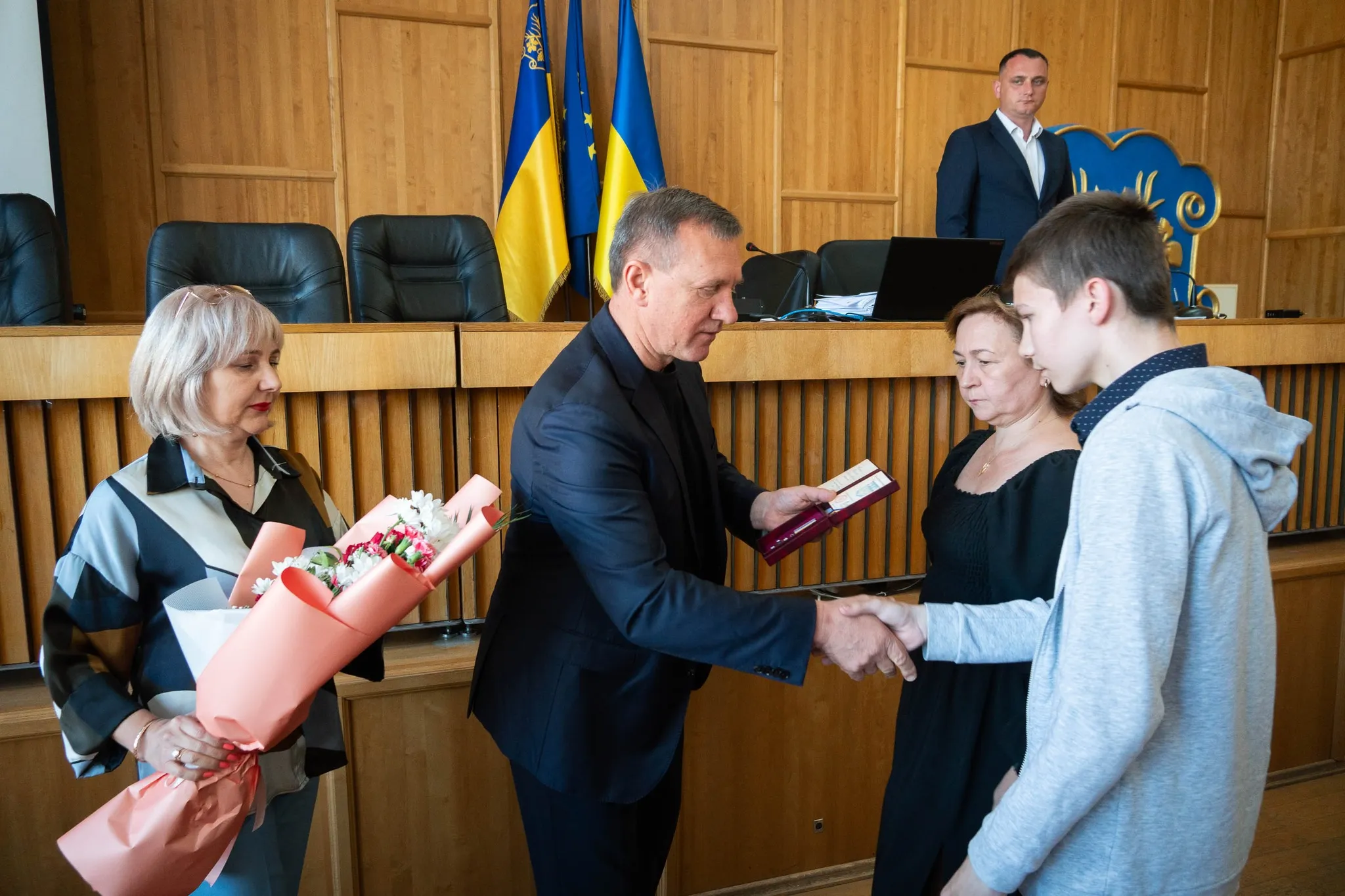 Ордени «За мужність» ІІІ ступеня (посмертно) рідним загиблих Захисників із Ужгорода й Ужгородського району сьогодні перед початком чергової сесії міської ради вручив міський голова Богдан Андріїв .