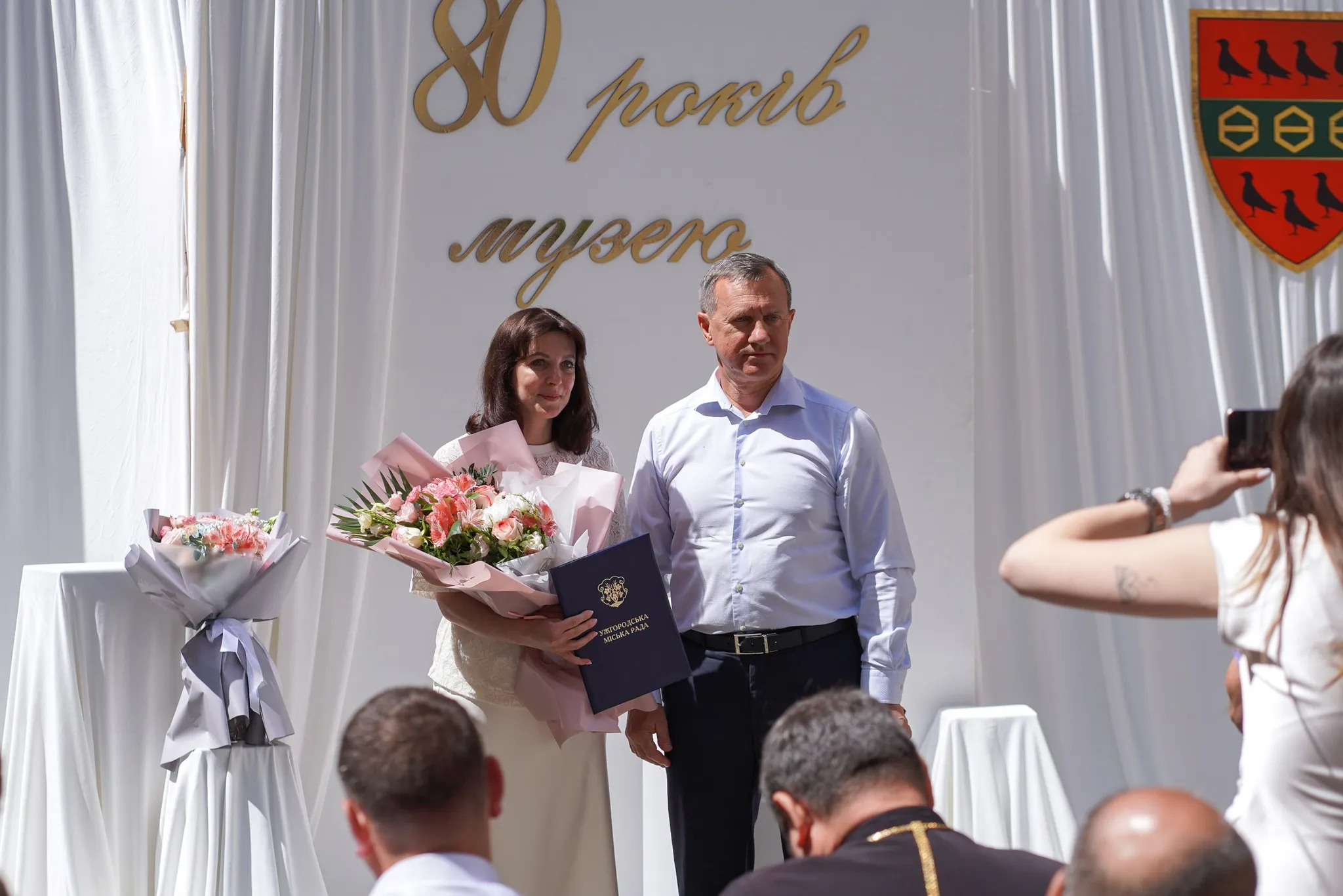 💬Привітав колектив музею, подякував за щоденну самовіддану працю та наголосив на значенні установи як місця збереження багатовікової історії Закарпаття і міський голова Богдан Андріїв. Грамотою Ужгородської міської ради за багаторічну діяльність зі збереження музейної, історико-культурної спадщини, розвиток духовної культури міста та краю нагороджено колектив музею, її Богдан Євстафійович вручив директорці музею Ользі Шумовській.