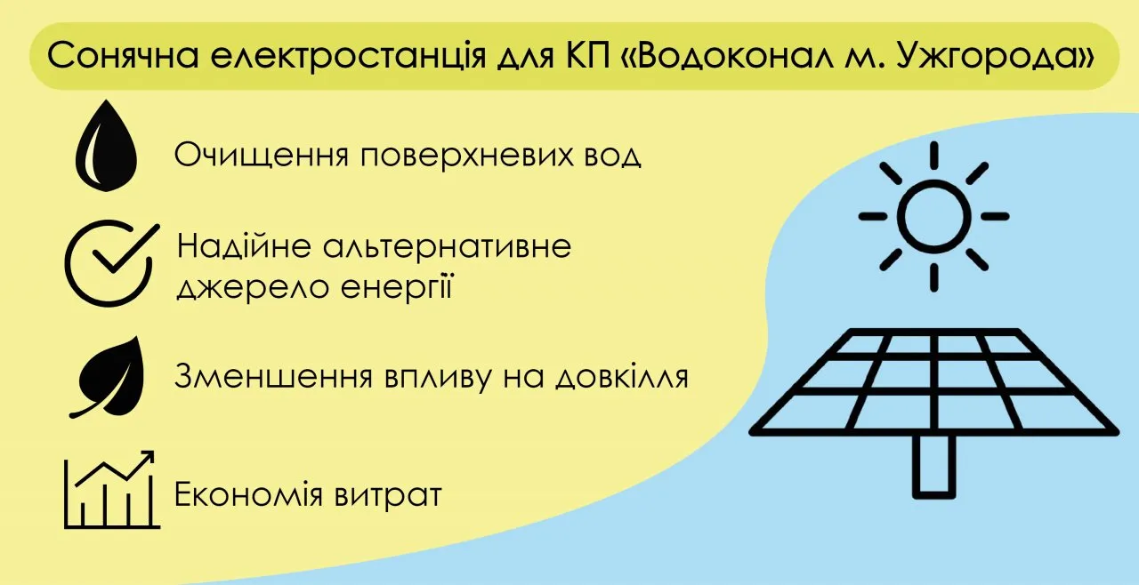 На об’єкті очищення поверхневих вод КП “Водоканал м.Ужгород” запрацювала сонячна електростанція потужністю понад 700 кВт. Вона буде працювати виключно на потреби комунального підприємства, забезпечуючи стабільну роботу системи очищення, що подає воду до домівок ужгородців.
