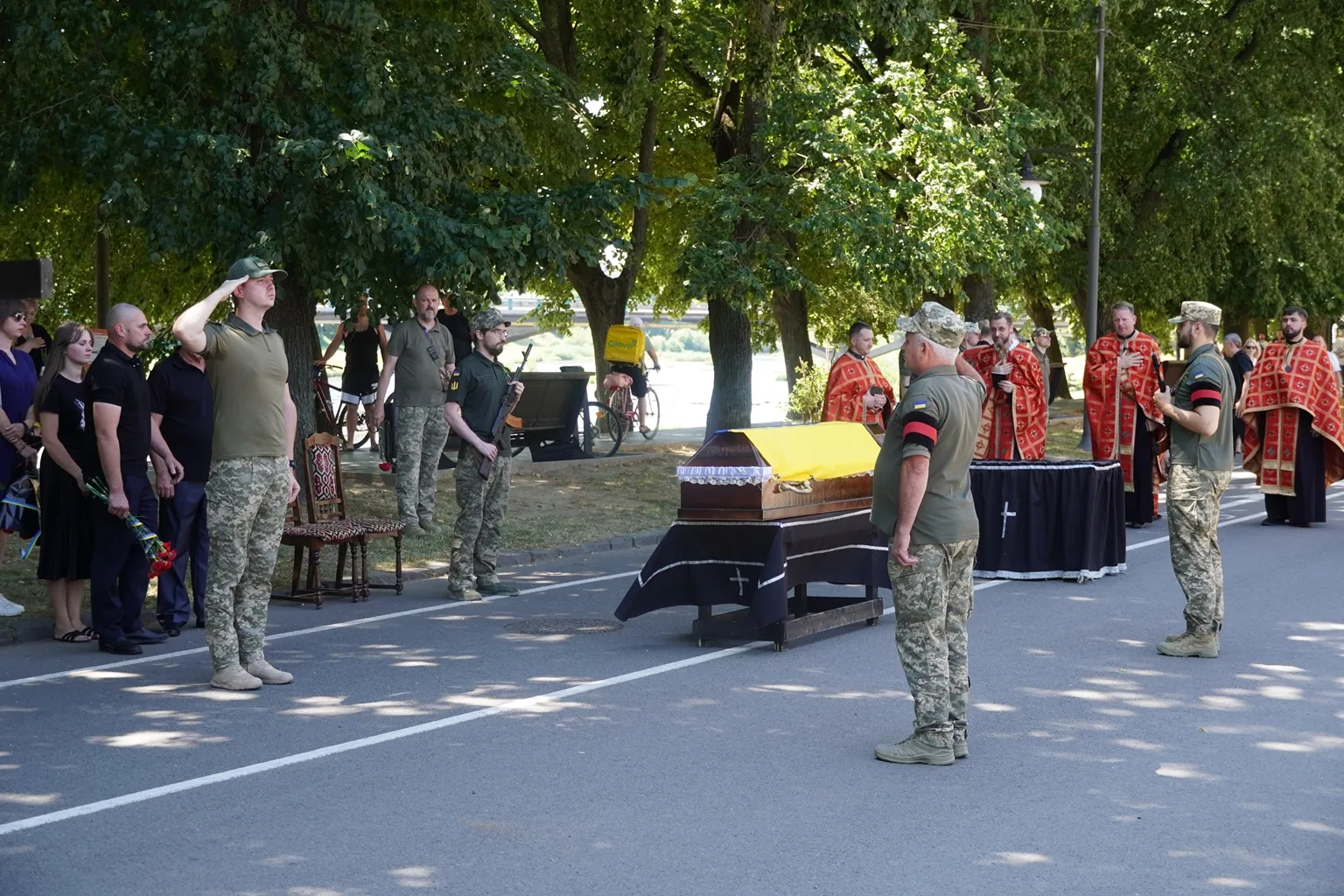 Прощалися з Героєм на набережній Незалежності біля пам’ятника жертвам Голодомору. Віддати шану прийшли рідні та близькі, міський голова Богдан Андріїв, військові, містяни.