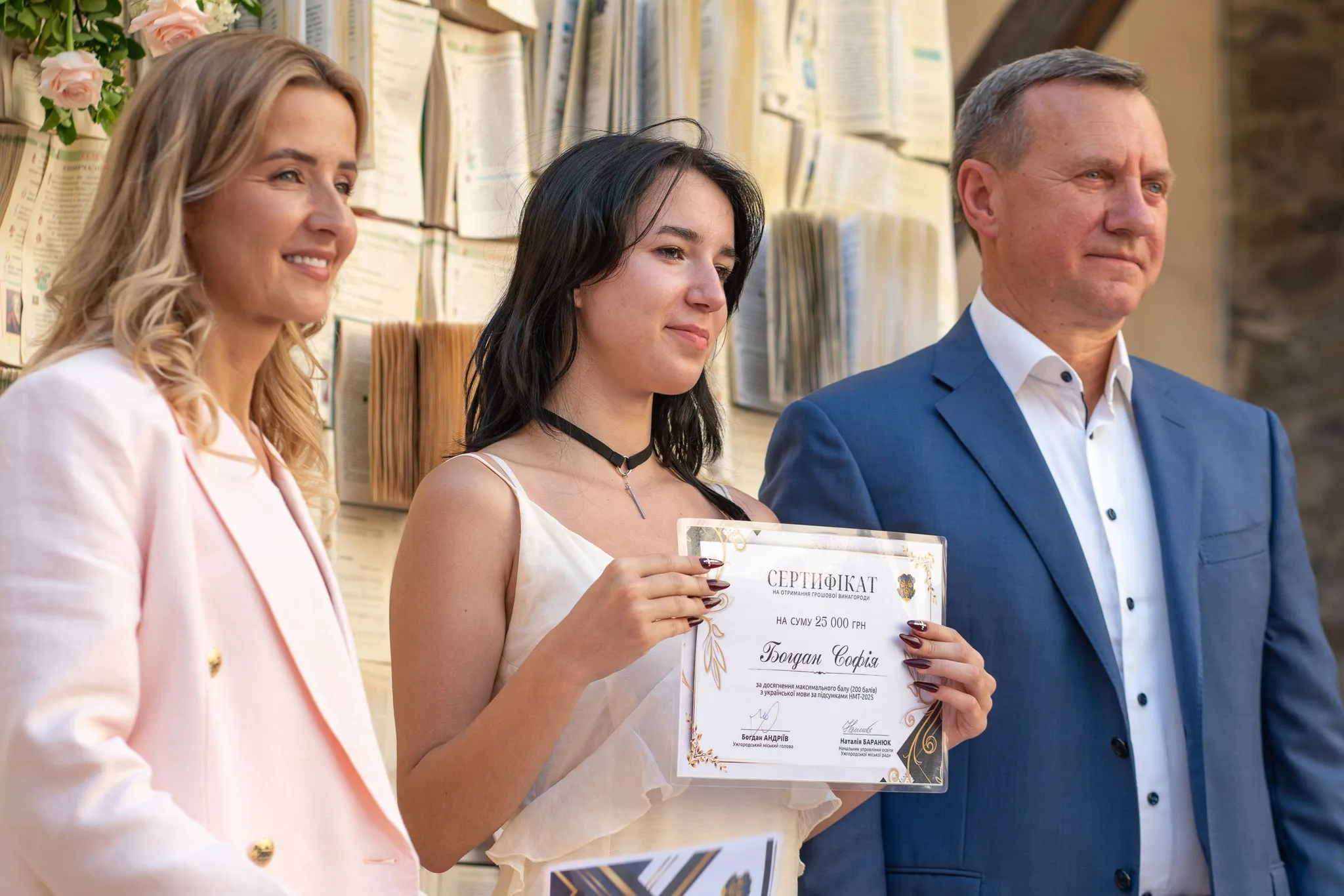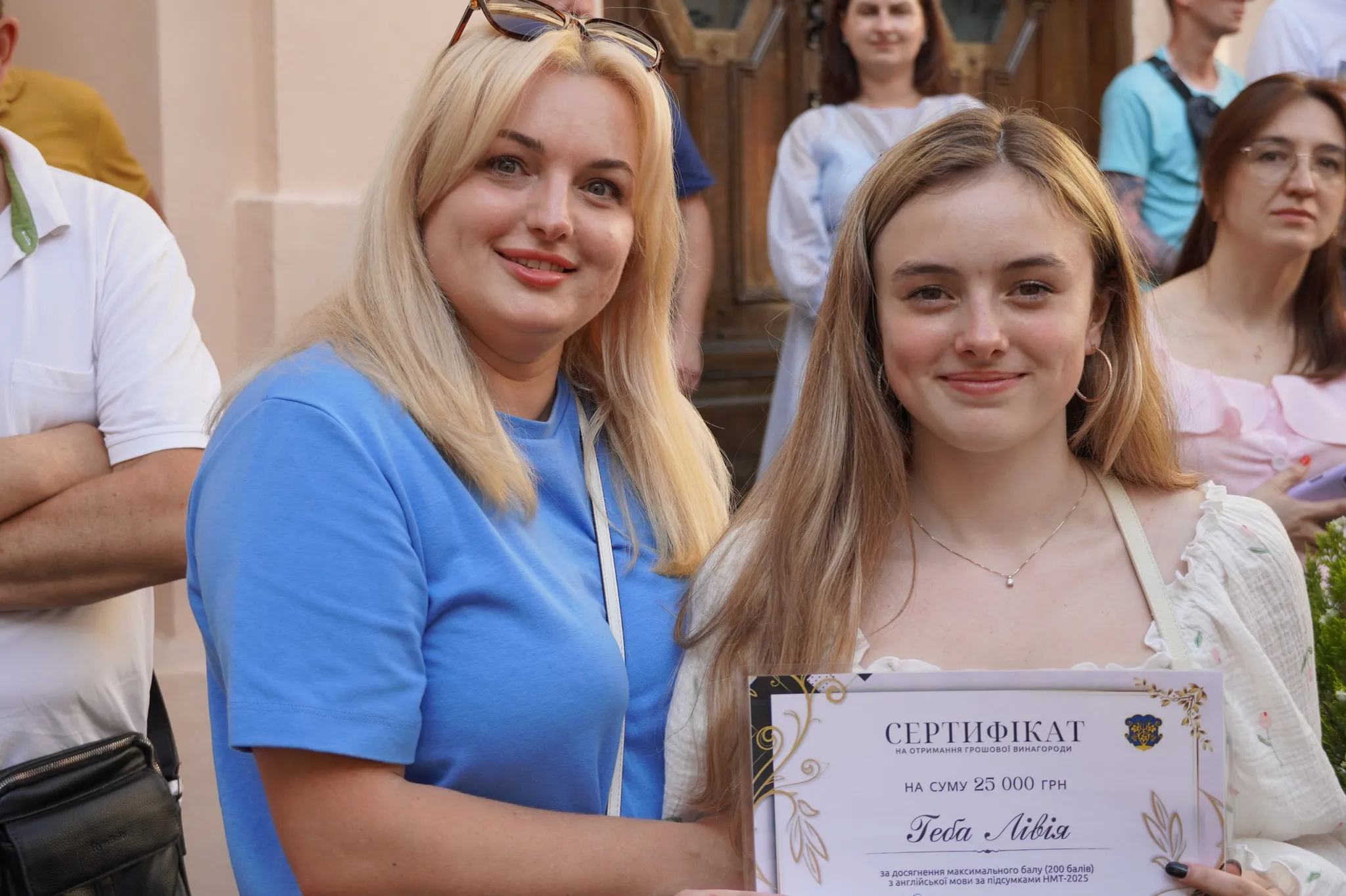 Окремо відзначили двох випускниць, які досягли найвищого результату одразу з двох предметів і отримали сертифікати на 50 000 гривень: