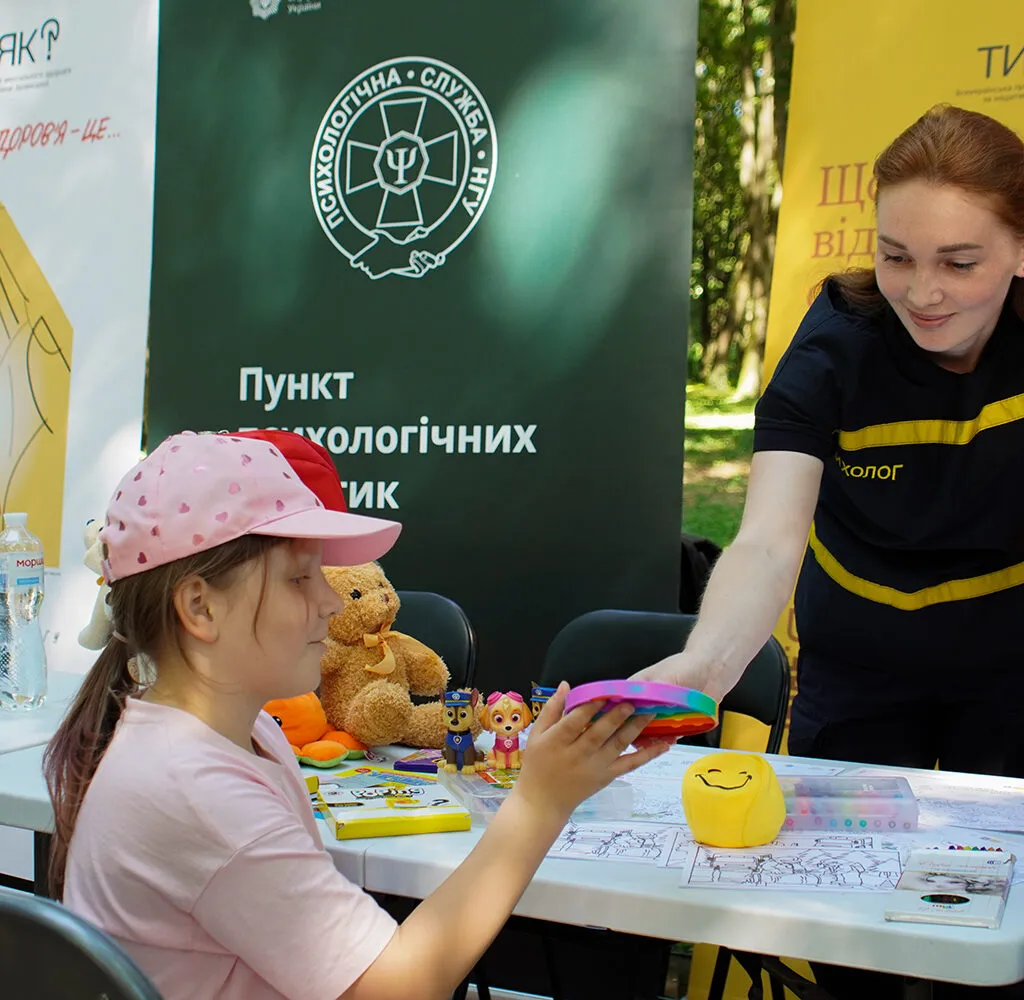 Фахівці з ментального здоров’я та психологи системи МВС провели open air-тренінг, спрямований на зниження рівня стресу та тривожності. Учасники мали змогу практикувати усвідомлене дихання, виконувати вправи на саморегуляцію, ліпити з кінетичного піску та проходити психологічні тести.