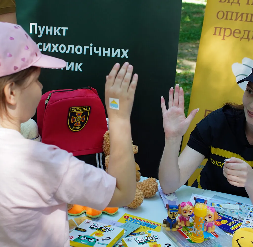 Особливою популярністю серед малечі користувалися творчі активності: діти малювали емоції на папері та навіть на асфальті, а також вчилися елементарним технікам релаксації — наприклад, за допомогою пиття води та дихальних вправ.