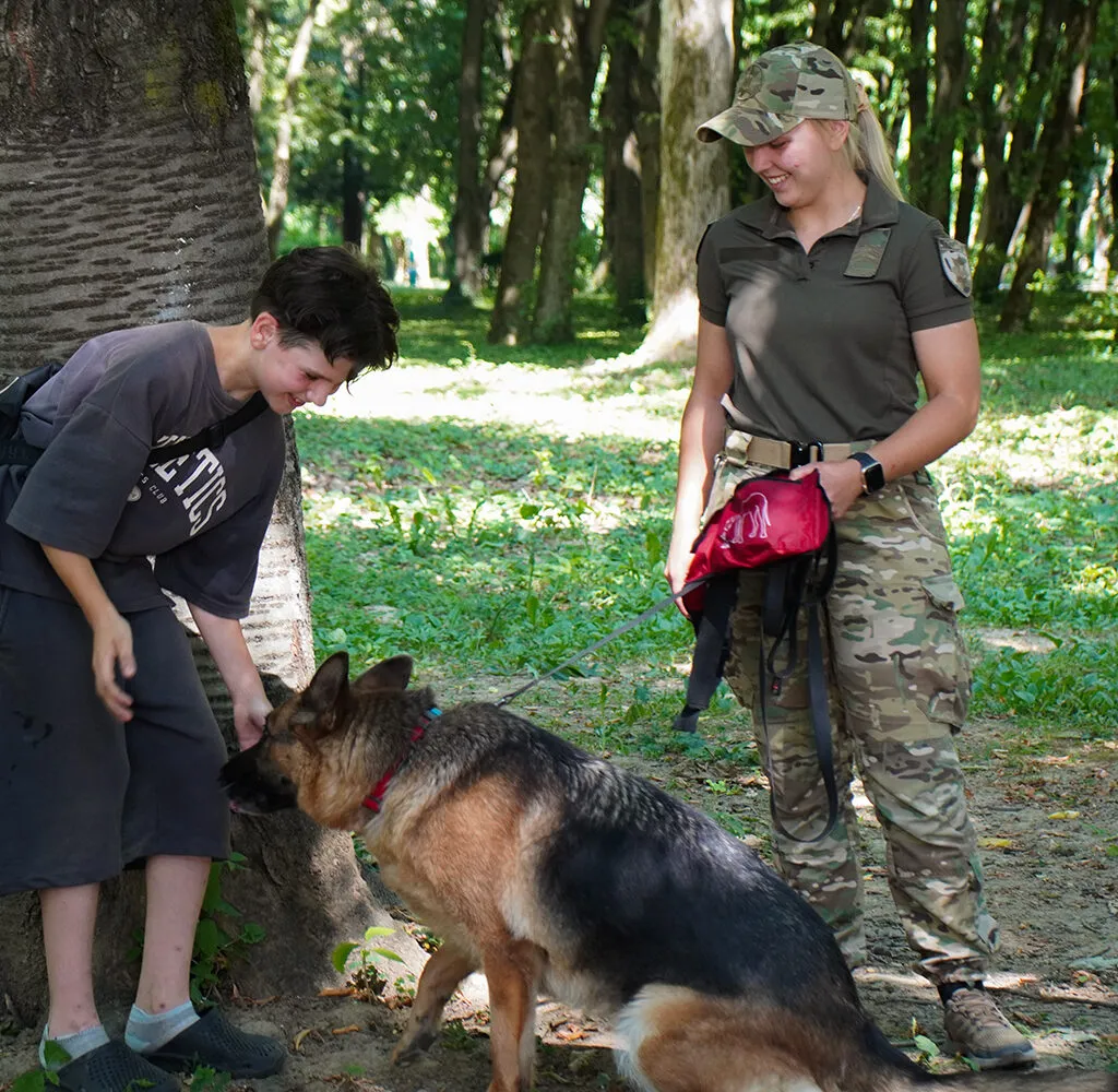 Не обійшлося й без руханки — веселого й корисного фізичного навантаження, яке розслабляє тіло та покращує настрій. А родзинкою заходу стала каністерапія: діти спілкувалися з чотирилапими помічниками поліцейських — службовими собаками. Гладили, обіймали, гралися з ними — і отримували справжню хвостату терапію.