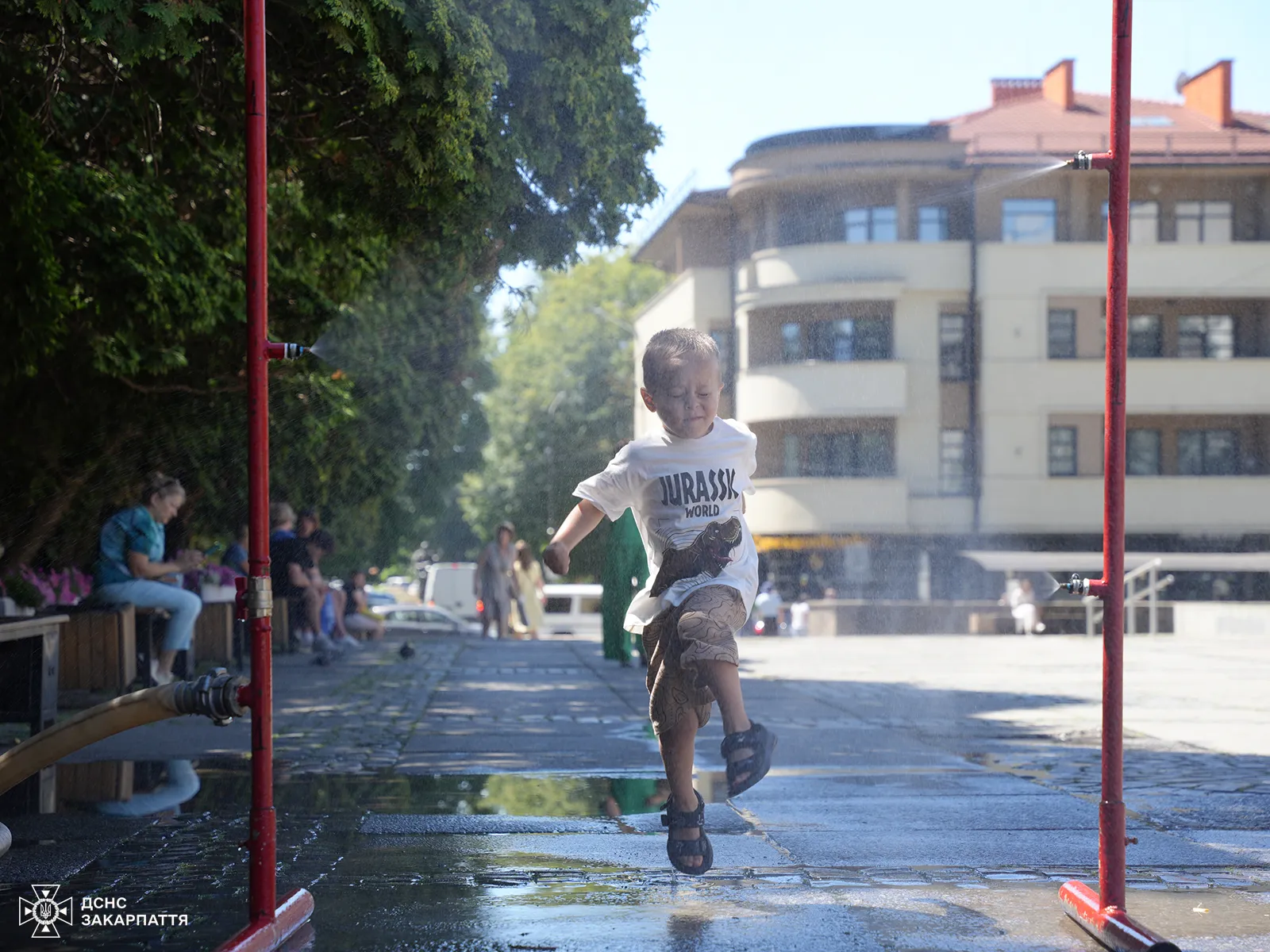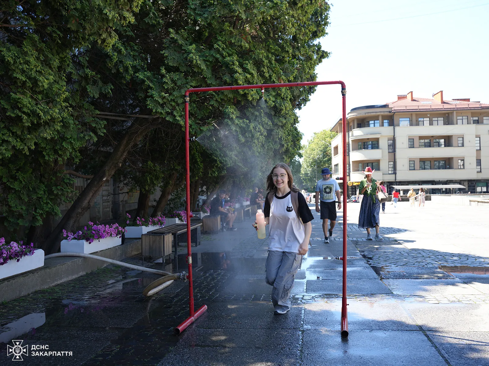 Усі потерпають від спеки. Але що поробиш – надворі літо. Рятувальники та представники місцевої влади знають що робити, аби полегшити життя ужгородців та гостей міста. Відсьогодні, на двох локаціях рятувальники ДСНС встановили охолоджувальні рамки-оприскувачі. Наразі пройти крізь “портали свіжості” можна на площі Поштовій та на набережній Незалежності.