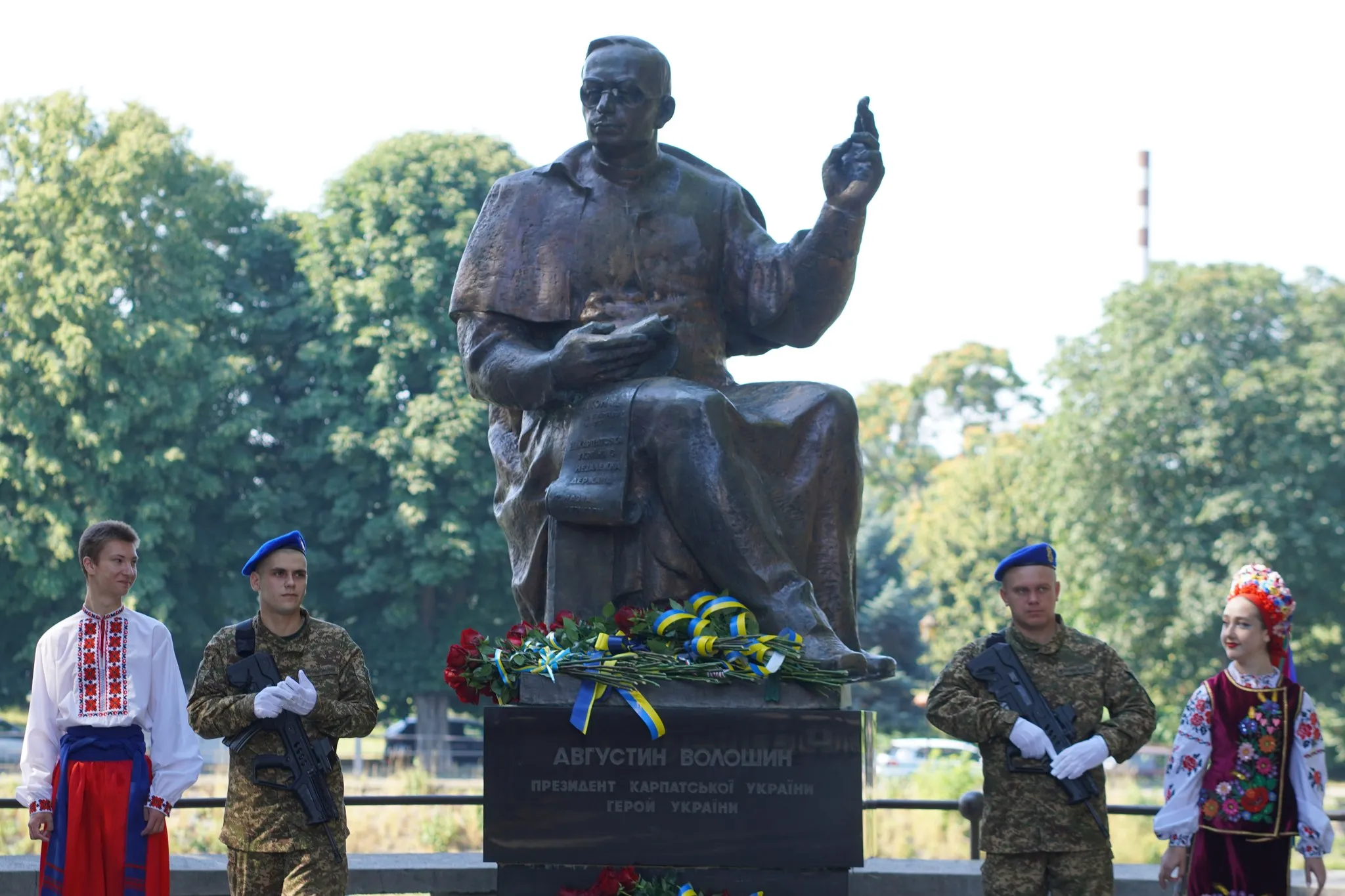 В Ужгороді біля памʼятника одному з борців за нашу державність – Президента Карпатської України Августину Волошину – зібралися нині військові, представники обласної та міської влади, духовенства, дипломати європейських країн, громадськість, щоб відзначити День Української Державності