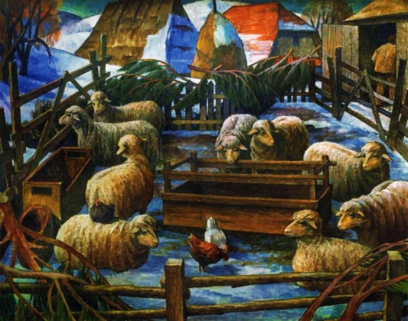 Але сніг люблю і любив завжди, а надто в горах. Я провів прекрасні зими в горах, часто їздив туди на творчі вилазки з мольбертом, дуже любив робити це узимку. Розумієте, коли зима, то сільські люди сидять удома: або прядуть, або тчуть, або майструють щось, у них є час, аби поспілкуватися. Тоді ти вивчаєш психологію горян, фіґлярство (жарти, – ред.), робиш зарисовки… Насичуєш себе і творчо, і духовно. Я пам’ятаю, як прядильниці мали колись дуже добрий такий сохтаж (звичай, – ред.) – проводжати зиму. Вони так файно співали, для мене то було задоволення дуже велике! По суті, при такому спілкуванні у мене й фігуративні композиції в думках одразу виникали, а потім ставали відомими картинами. Уже не був у такій ситуації років десять, уявіть собі. Востаннє їздили зі світлої пам’яті Золтаном Мичкою (закарпатський художник, – авт.), він був моїм другом по духу і багатократним компаньйоном на етюдах. У ті часи мої поїздки вже були короткі, бо дружина була лежача понад 10 років, я її доглядав. То я домовлявся з кимось на тиждень, і ми їхали, ходили і творили. З останньої поїздки привіз тематику зсувів. А ще – соціальну тему заробітчанства, тоді ж написалася картина “Усіма залишена”, про стару жінку, яка була сама вдома, бо усі рідні по заробітках. Також “Кошара” – звідти, з тої останньої поїздки.