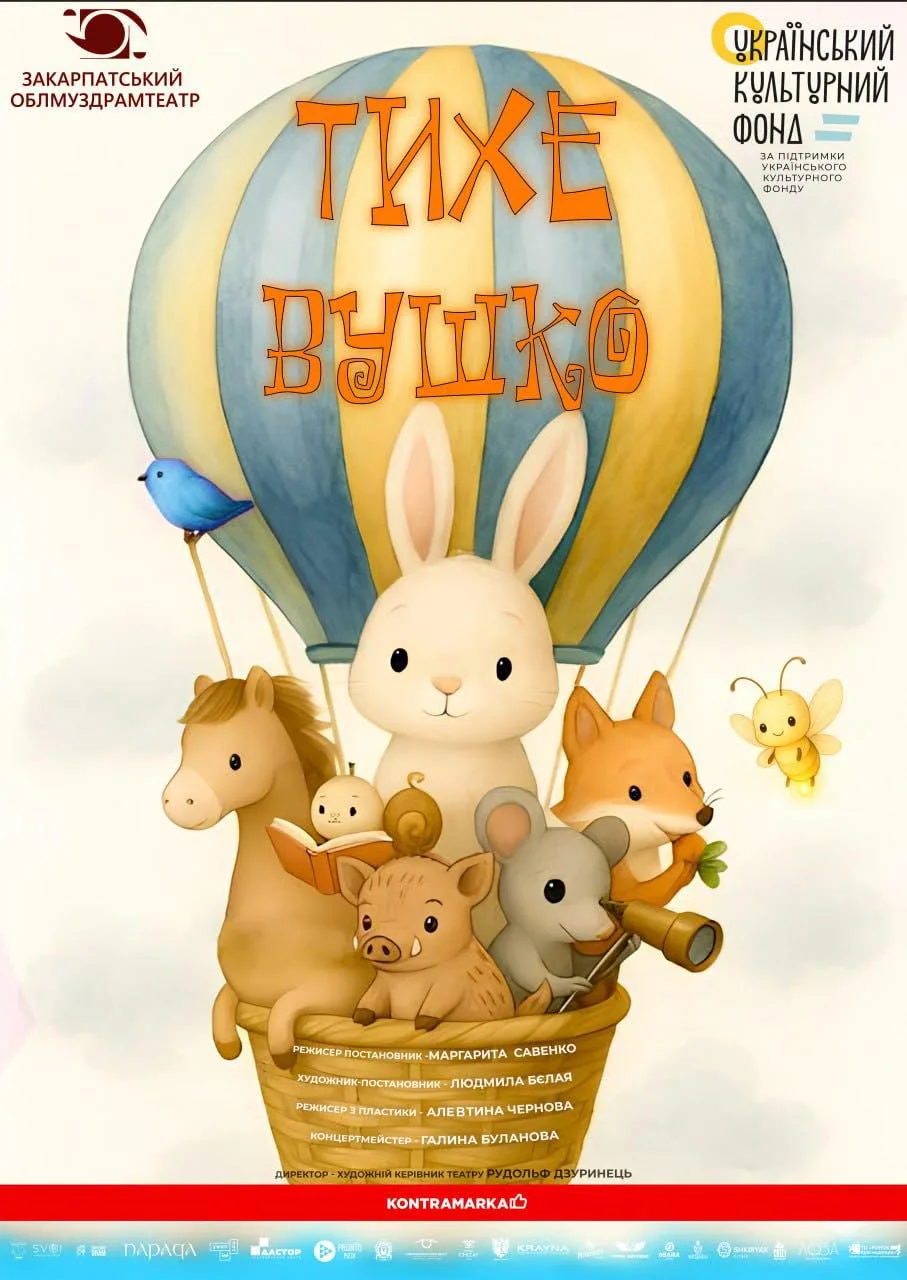 26 вересня у Закарпатському музично-драматичному театрі відбудеться прем’єра інклюзивної дитячої вистави “Тихе вушко”. Головні герої вистави – казкові тваринки з особливостями, які вчитимуть маленьких глядачів рівності, дружбі та взаємопідтримці. У виставі залучені актори муздрамтеатру, зокрема, з інвалідністю у виставі залучені актори Закарпатського муздрамтеатру, зокрема, з інвалідністю. Під час показу працюватиме фахівець із сурдоперекладу.