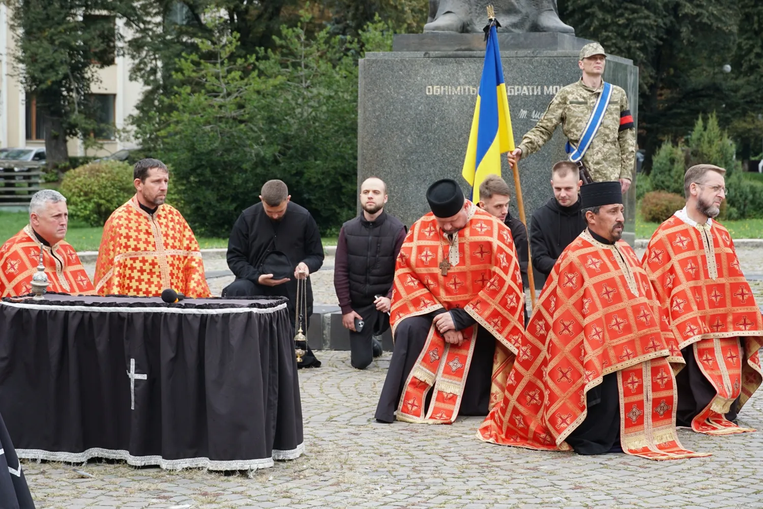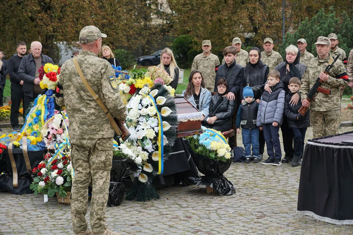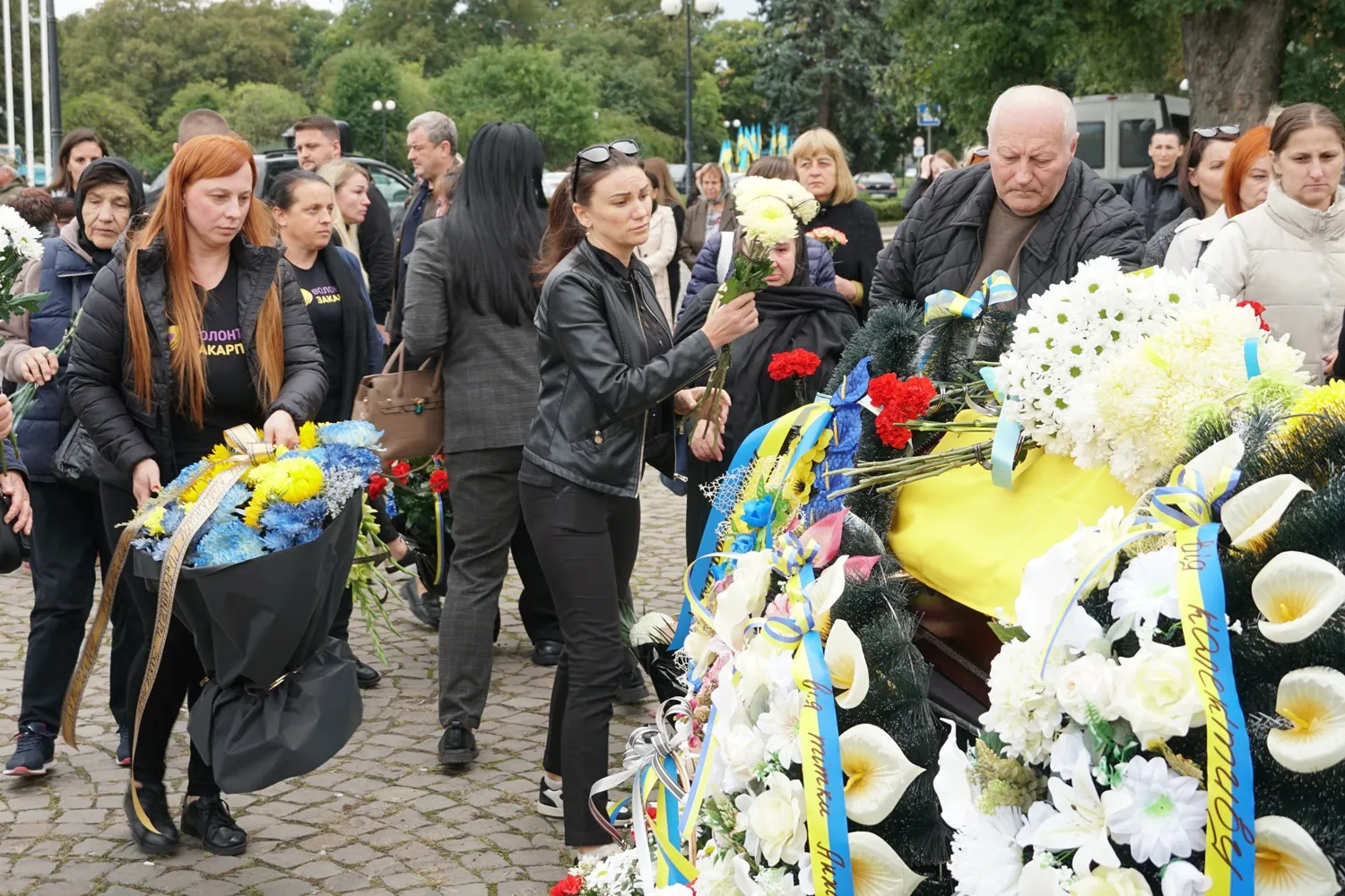 Попрощатися із захисником на площі Народній прийшли рідні, друзі, побратими, волонтери, в.о. міського голови, заступник міського голови Вадим Борець та жителі Ужгорода.
