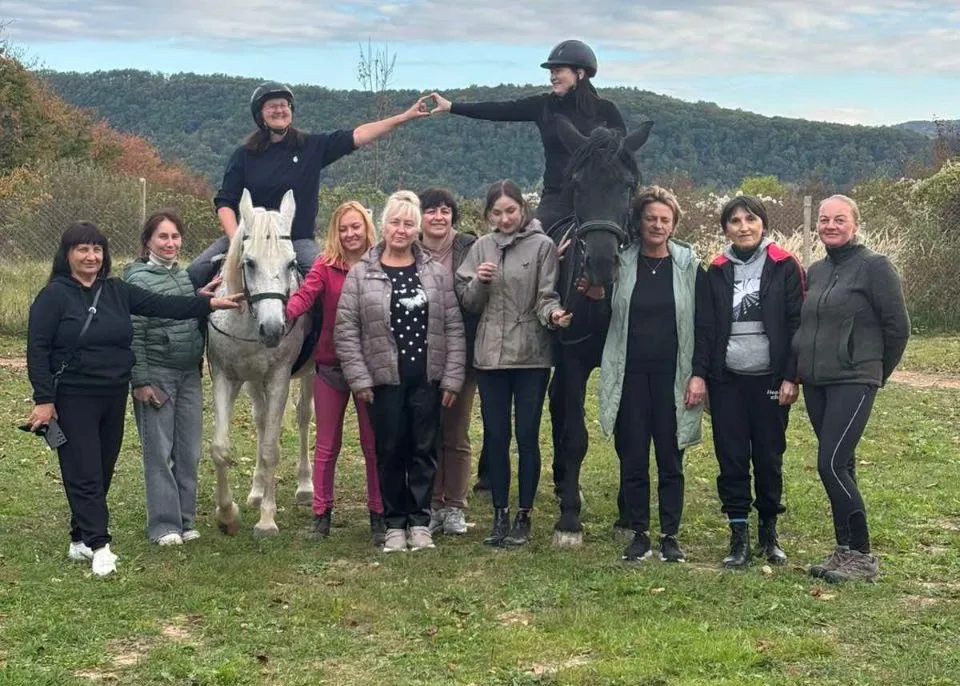 Ужгородців традиційно гостинно прийняла приватна конюшня «Unicorn», де учасники мали можливість відпочити на природі, поспілкуватися у дружній атмосфері та взяти участь у терапевтичних заняттях із кіньми. Такі заходи допомагають рідним Героїв відновити емоційну рівновагу, зменшити рівень стресу та відчути підтримку громади.