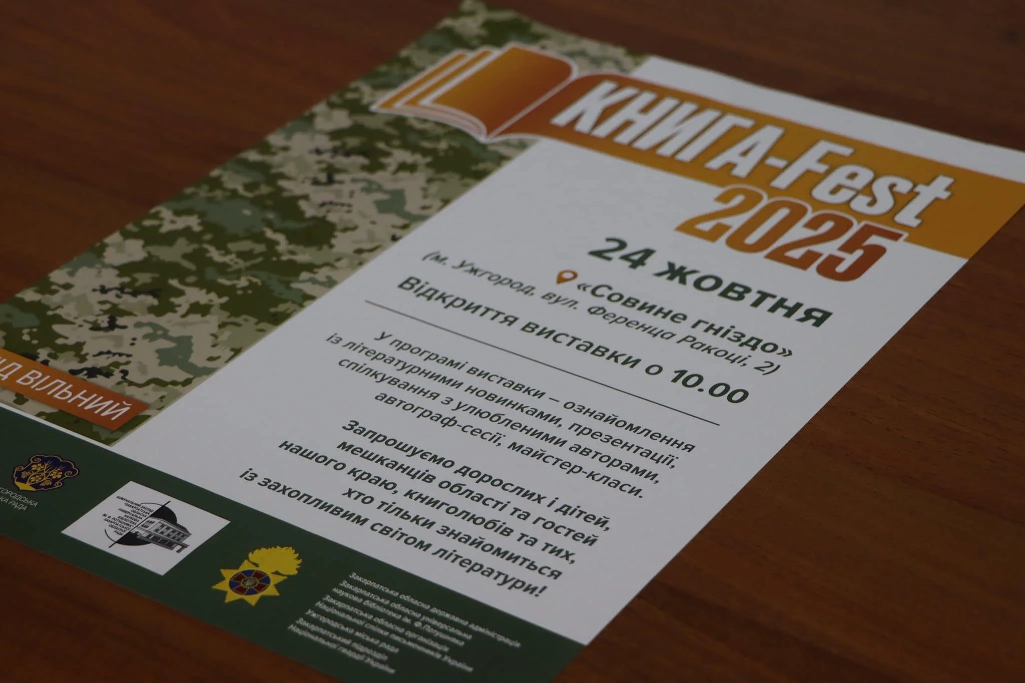 📍«Книга-фест 2025» пройде 24 жовтня з 10:00 до 17:00 у «Совиному гнізді» (м.Ужгород, вул.Ференца Ракоці, 2).
