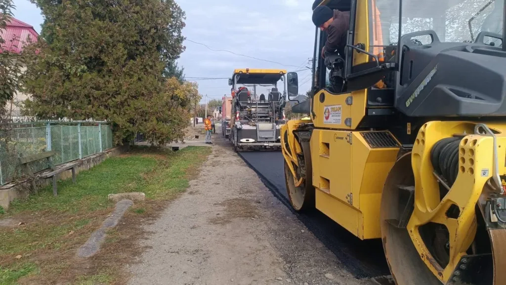 Підрядна організація наразі виконує укладання вирівнюючого шару асфальтобетону, що забезпечить рівну проїзну частину, довговічність покриття та комфорт пересування мешканців навколишніх населених пунктів.