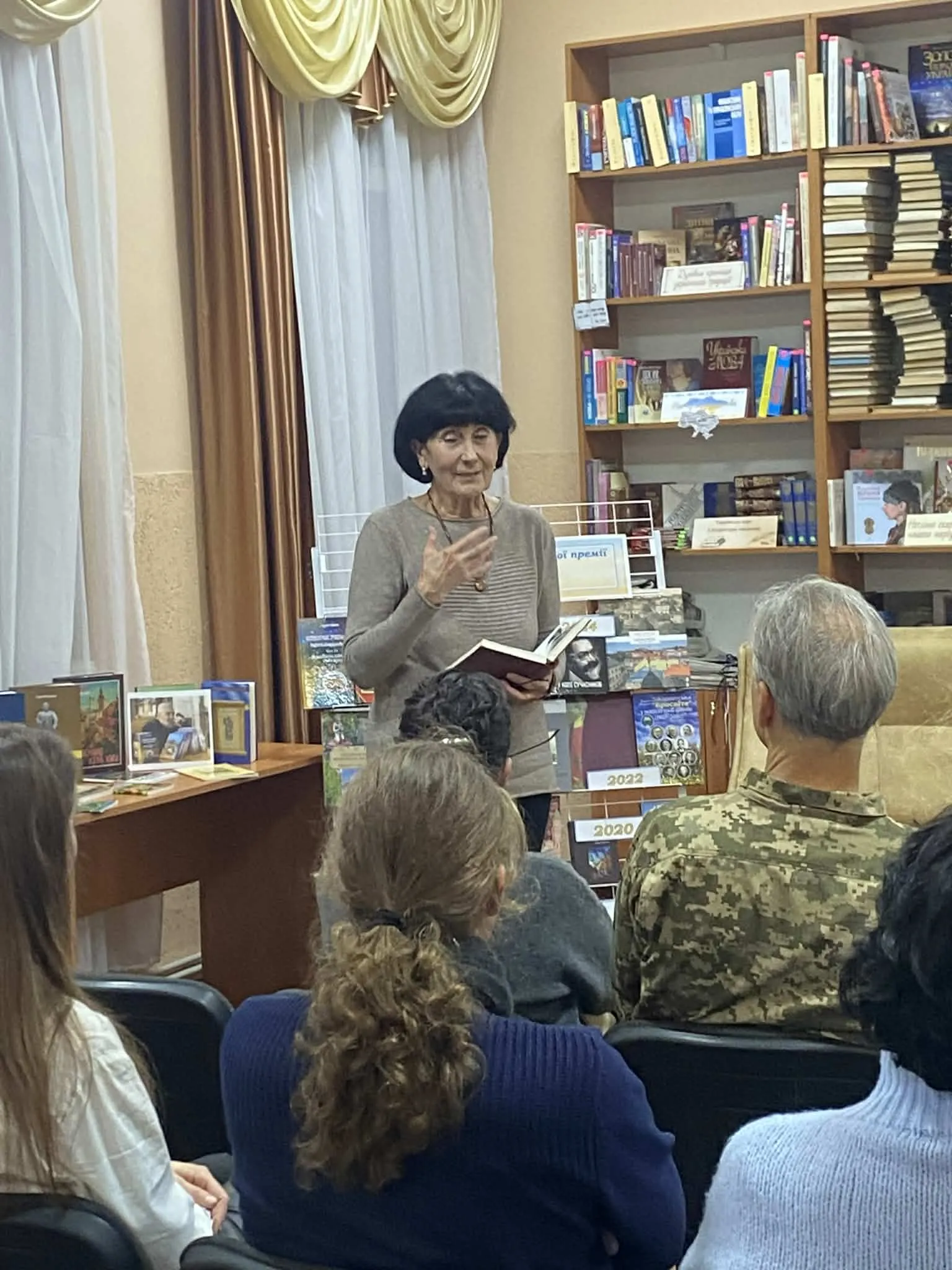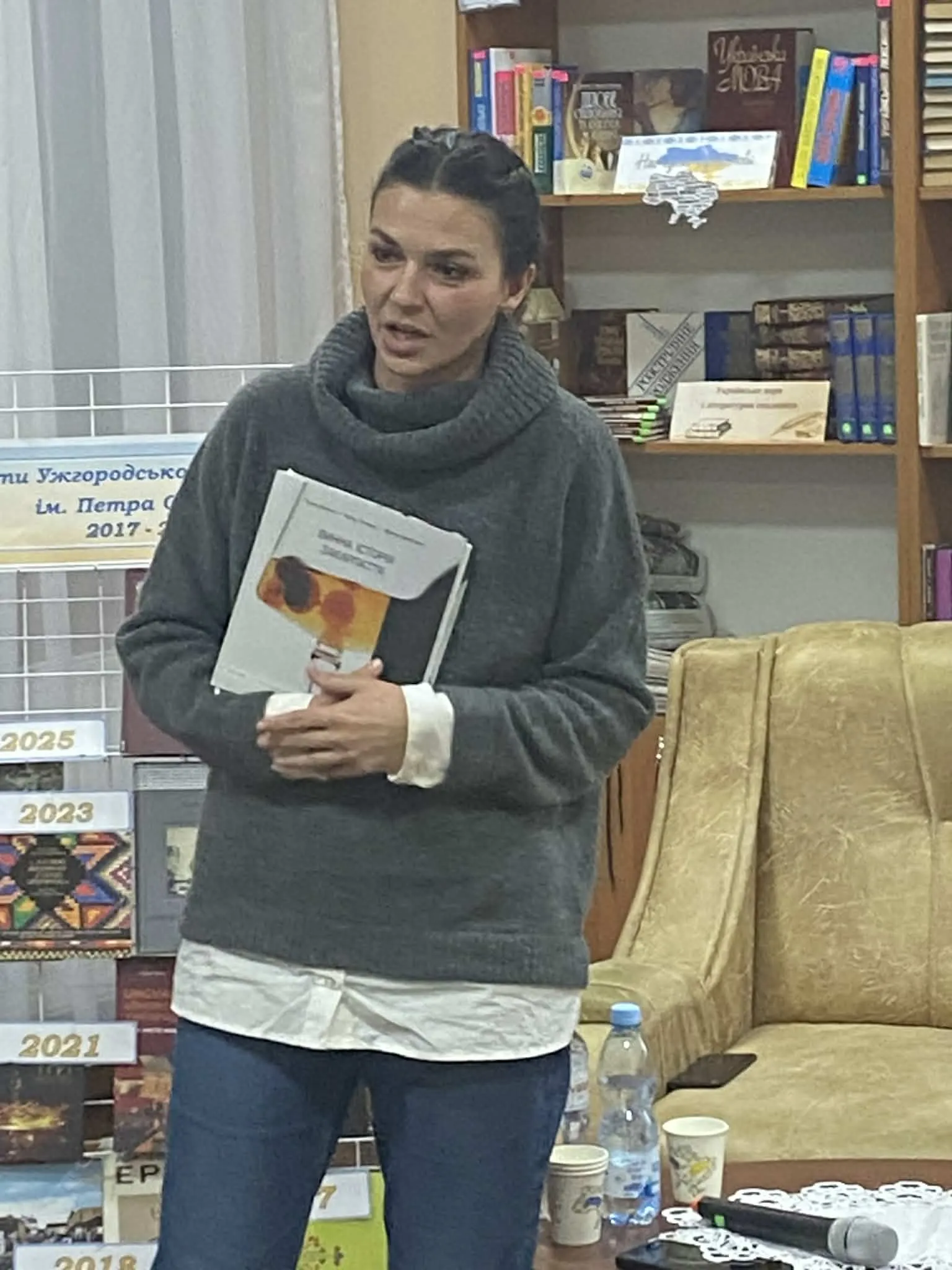 🗣️Зустріч відкрила директорка Ужгородської публічної бібліотеки Людмила Ленарт, прочитавши вірш Петра Скунця. Акцію ініціював письменник і журналіст Олександр Гаврош, адже дуже часто книжки, відзначені премією Ужгородської міської ради, залишаються малопомітними для широкої громадськості. Тому є потреба в їхньому ширшому представленні.