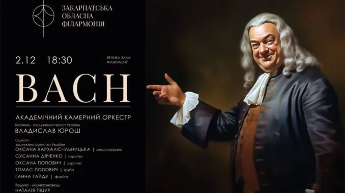 2 грудня Академічний камерний оркестр під керівництвом заслуженого артиста України Владислава Юроша запрошує на вечір класичної музики, присвячений творчості Йоганна Себастьяна Баха — генія бароко, чия музика століттями надихає та зворушує серця.