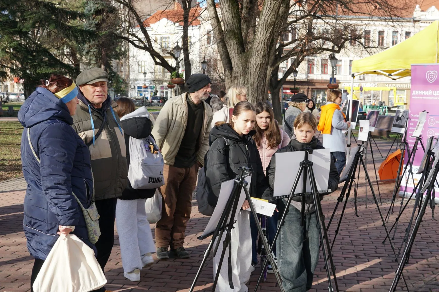 Також студенти Академії мистецтв долучилися до кампанії й представили на площі тематичну виставку робіт «Відкриті очі».