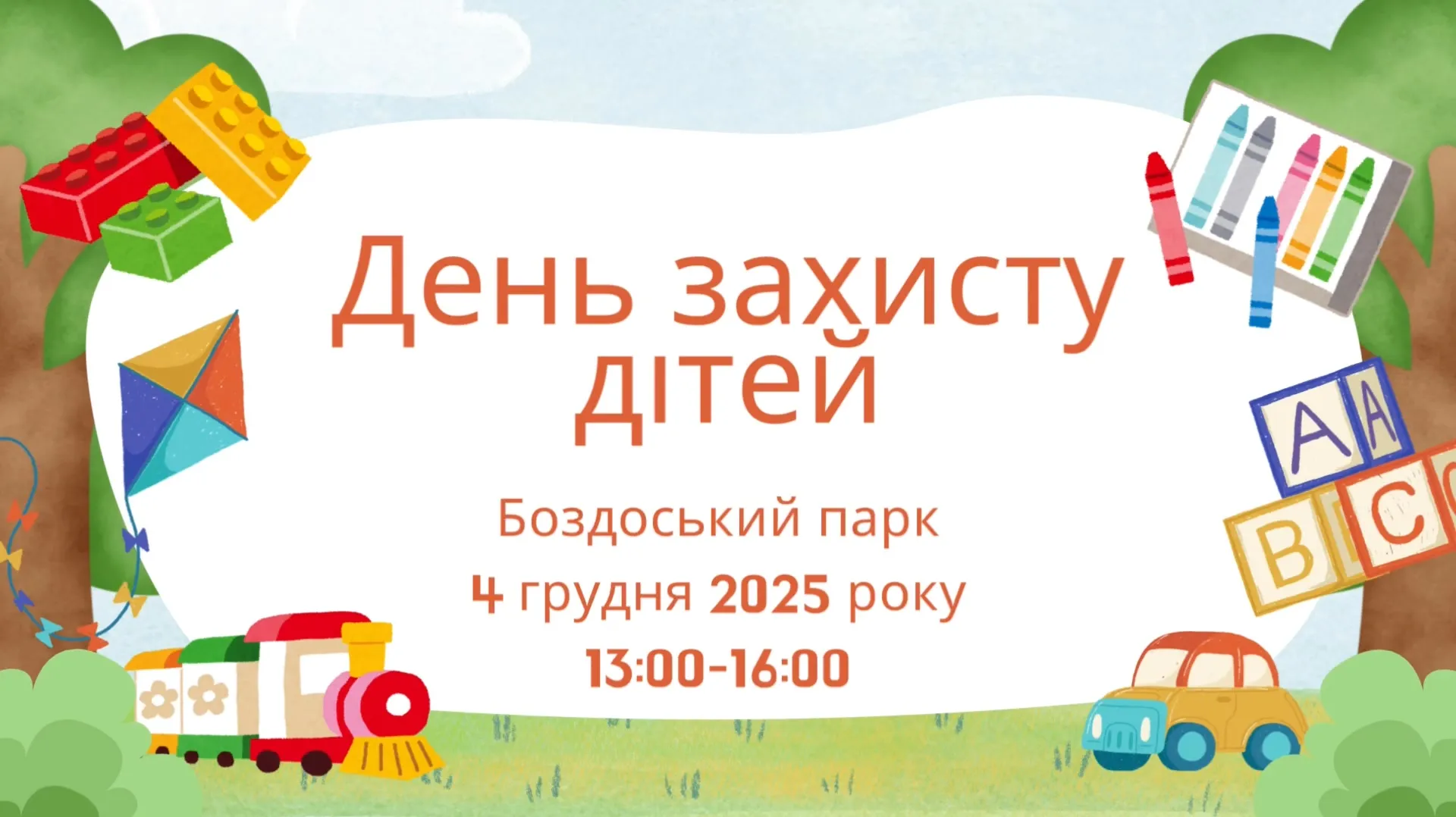 Друзі, маємо чудову новину! День захисту дітей, який був перенесений, відбудеться 4 грудня 2025 року з 13:00 до 16:00 у Боздоському парку🌳