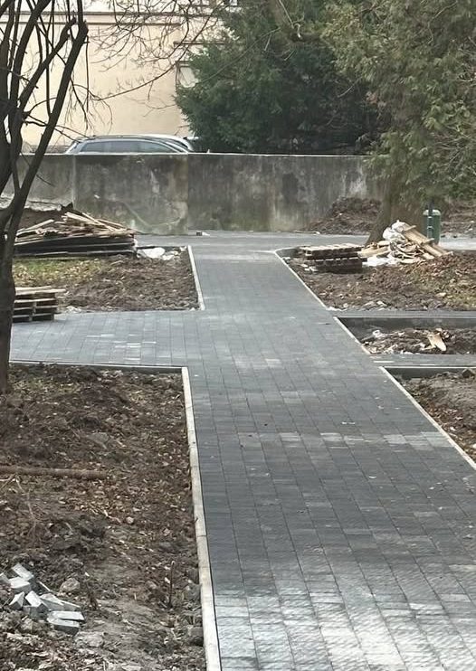 Врешті, 15 грудня у сквері доклали необхідні ряди бруківки та зробили доріжки знову симетричними.