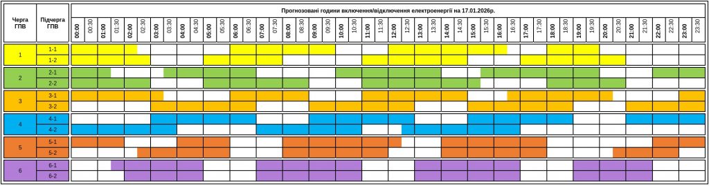 Детальний графік на суботу, 17.01.2026, буде наступним: