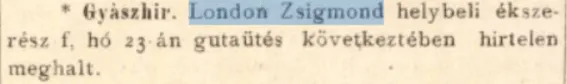 У червні 1885 року газета Ung повідомила трагічну новину, що Жигмунд Лондон помер від інсульту.