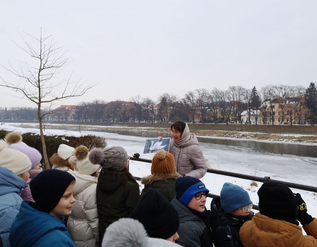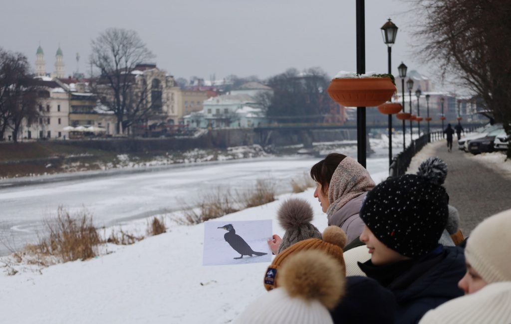 Через замерзання водойм на річці Уж зібралося багато пернатих. За допомогою біноклів діти розглядали: