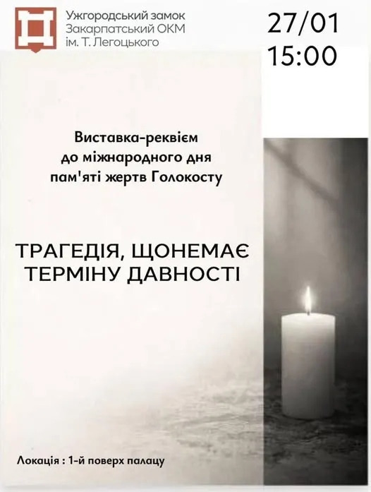 У Закарпатському обласному краєзнавчому музеї імені Тиводара Легоцького 27 січня відбудеться урочисте відкриття тимчасової виставки-реквієму під назвою «Трагедія, що немає терміну давності».
