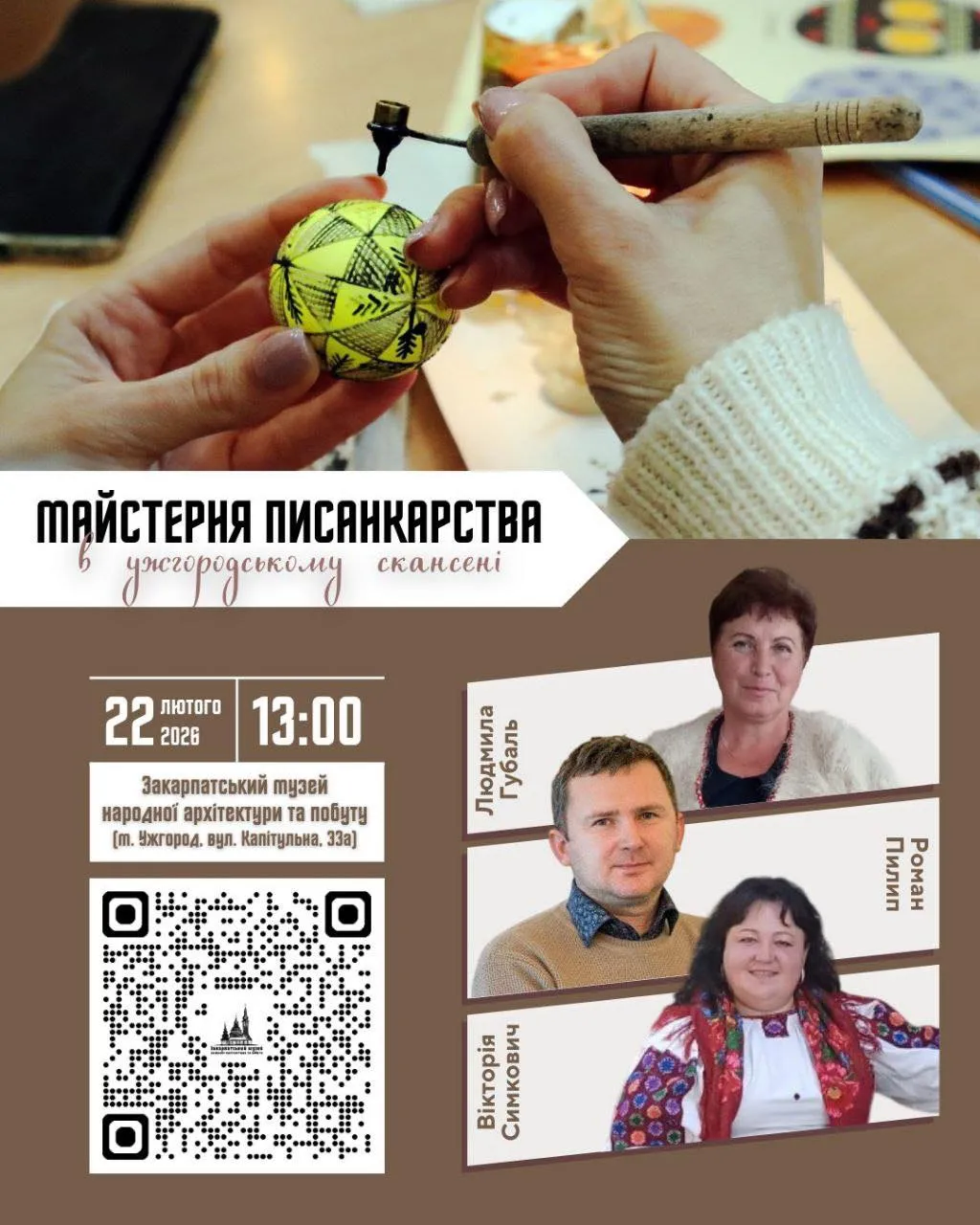 Музей народної архітектури та побуту в Ужгороді оголосив про запуск Майстерні писанкарства, яка розпочне роботу у лютому. Ця мистецька ініціатива спрямована на збереження й популяризацію традиційних мистецтв.
