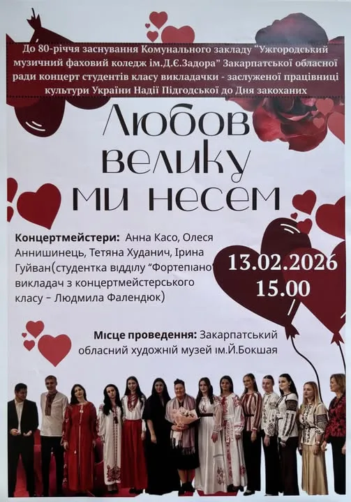 Ця подія має подвійне значення, адже вона присвячена двом важливим датам: 80-річчю заснування Ужгородського музичного фахового коледжу ім. Д. Є. Задора та Дню закоханих, який щороку відзначають 14 лютого.