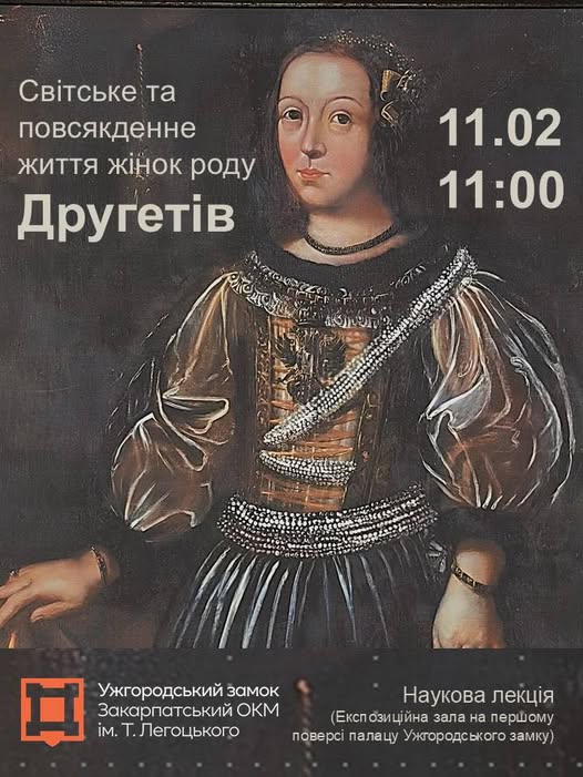Під час лекції експерти розкажуть про життя дружин представників роду Другетів у XIV–XVII століттях, висвітливши світські аспекти їхнього повсякдення у контексті політичних, соціальних та релігійних процесів Угорського королівства. Особливу увагу буде приділено впливу таких жінок, як Марія Фоллії, Фружина Доці, Катерина Надошді, Анна Якушич, Марія Естергазі та Терезія Кеглевич, на конфесійну політику, культурне життя та управління маєтками.