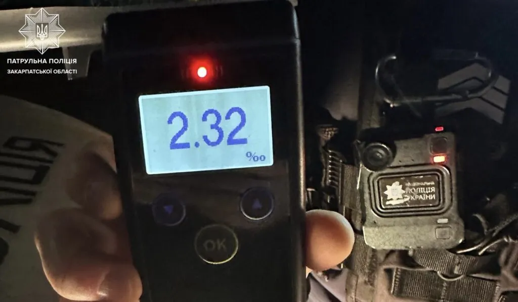 Керманичу запропонували пройти огляд на місці зупинки за допомогою алкотестера. Результат перевірки показав вміст алкоголю в крові на рівні 2,32 проміле, що більш ніж у десять разів перевищує допустиму норму.