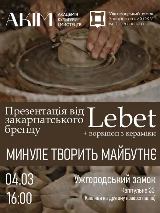 Середа стане днем творчості в історичних стінах Ужгородського замку. Тут пройде майстер-клас від Марини Гутлебет. Вона є засновницею відомого бренду сучасної кераміки під назвою Lebet. Її роботи вдало поєднують давню спадщину та сучасні дизайнерські рішення.