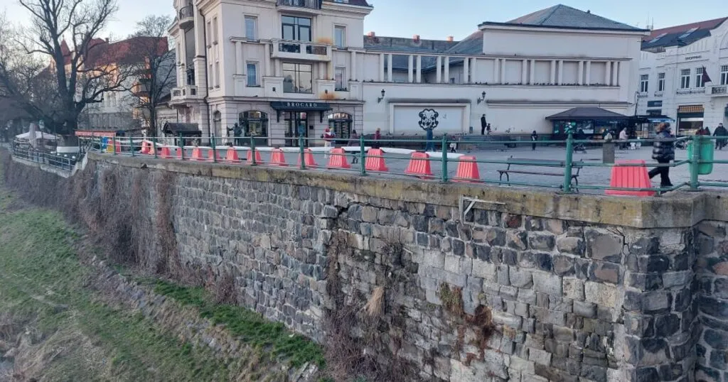 24 лютого на Театральній площі виникла серйозна загроза обвалу, що змусило міську раду визнати частину площі аварійною та встановити захисні блоки. Після ретельного огляду площі та підпірної стіни фахівцями 27 лютого було скликано комісію з питань техногенно-екологічної безпеки та надзвичайних ситуацій (ТЕБ та НС), на якій відповідальність за ремонт пошкодженого колектора поклали на КП «Водоканал Ужгород». Департаменту міської інфраструктури було доручено забезпечити фінансування проекту та підготувати звернення до Закарпатської ОВА щодо можливого співфінансування ремонтних робіт.