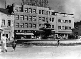 Площа, що пережила війну, спочатку приваблювала круглою квітковою клумбою. Згодом, її центр прикрасив фонтан, архітектура якого відображала «класичний сталінський» стиль. Кілька великих чаш з арматурою, типові для того часу, стали символом епохи. Одна з чаш, круглої форми з високими бортиками, додавала монументальності.