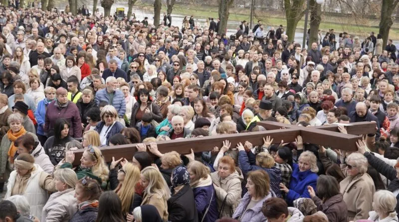 Під час підйому на Пагорб Слави хрест несли священнослужителі. На завершальному етапі шляху його знову взяли в руки матері. Багато з цих жінок втратили своїх синів у запеклих боях за незалежність. Фінальна точка молитовного маршруту була обрана не випадково. Учасники зібралися там, де спочивають сучасні герої, які віддали свої життя у цій жорстокій війні.