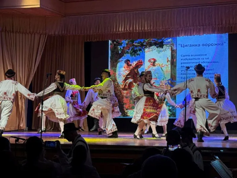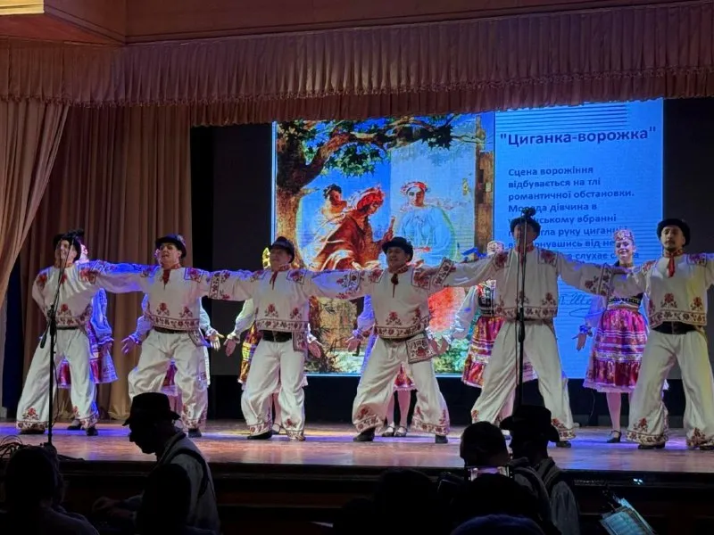 Окрім сольних та хорових номерів, колектив представив фрагмент «Вечорниці» з відомої п’єси «Назар Стодоля». Драматизм постановки органічно доповнювався хореографічними здобутками — зокрема, артисти виконали запальний український гопак, що продемонстрував високу технічну майстерність та енергетику закарпатських танцюристів.