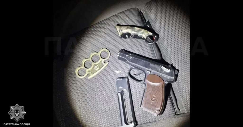У результаті огляду правоохоронці виявили кілька предметів, обіг яких суворо регламентується або заборонений. Серед знахідок був предмет, що зовні нагадує пістолет Макарова. Крім того, у салоні автівки знаходилися металевий кастет та ніж зі складаним механізмом.
