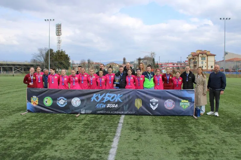 Ужгородський стадіон «Авангард» став головною ареною для проведення вирішальних поєдинків у межах престижного турніру «Кубок ліги 2026». Спортивна подія зібрала найкращі жіночі футбольні колективи, які продемонстрували високу майстерність та жагу до перемоги. Після завершення напружених матчів на полі відбулася офіційна частина заходу — урочисте вшанування лауреаток змагань.