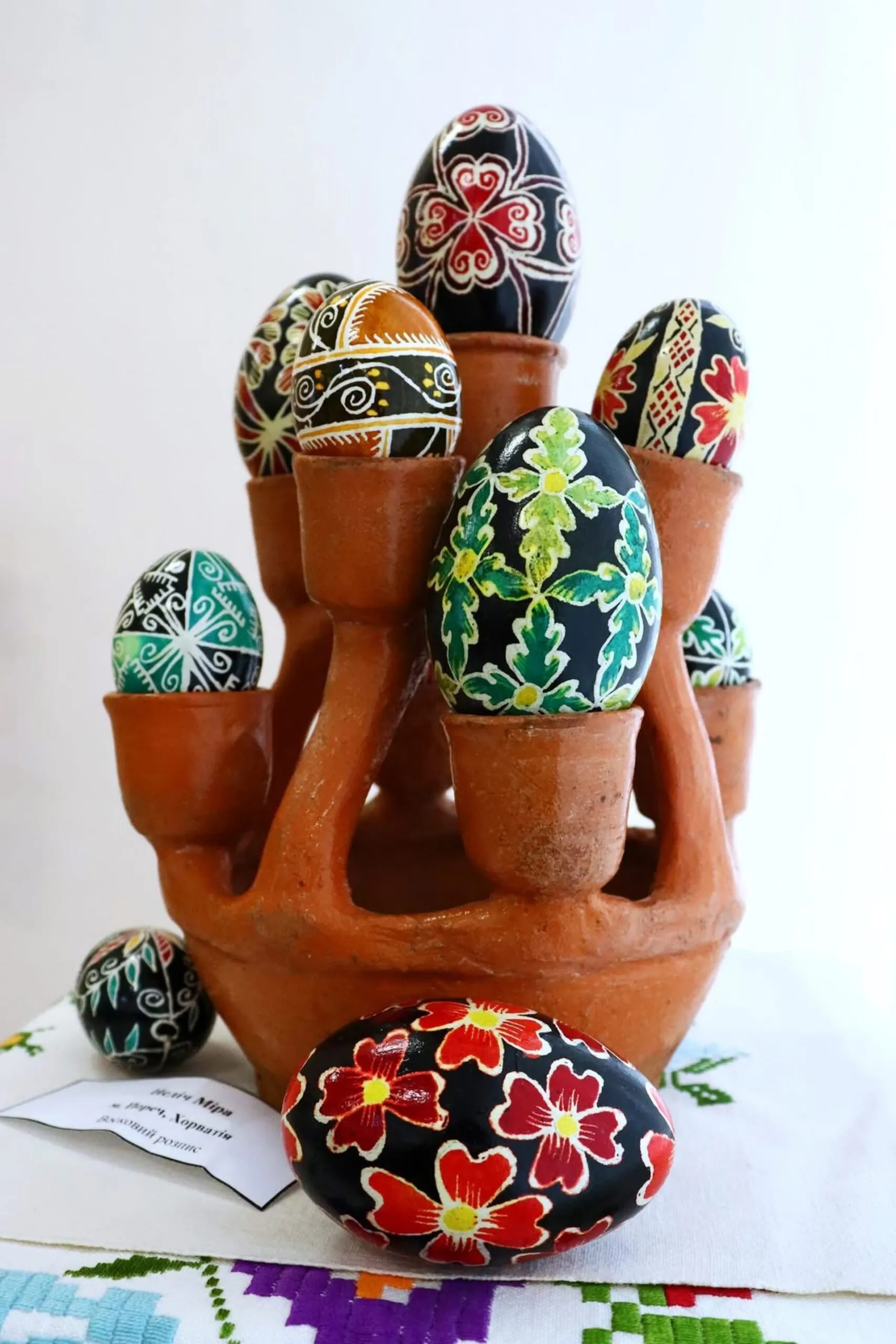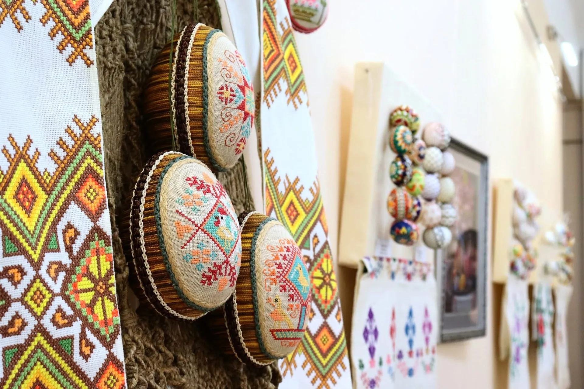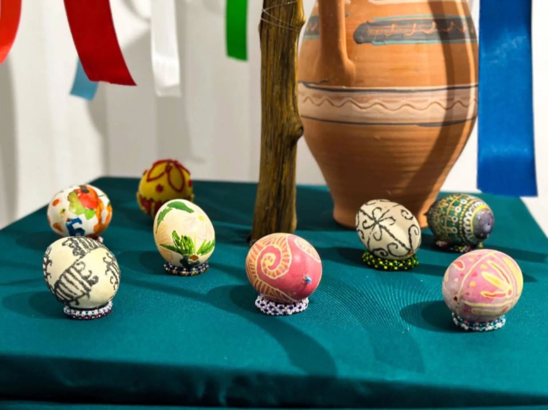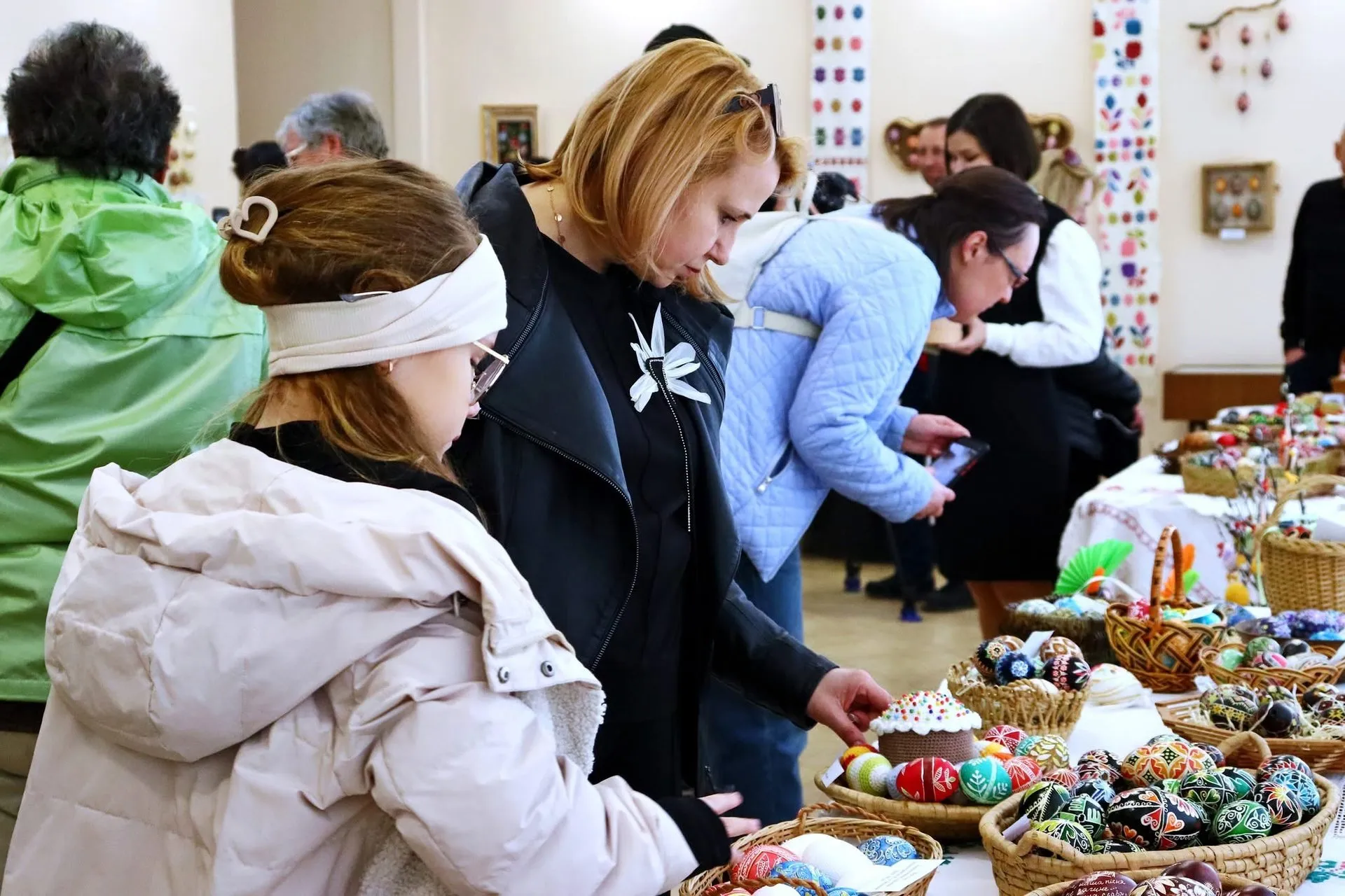 Експонати включають музейні зразки та арт-об’єкти сучасних авторів. Виставка доповнена вишитими рушниками, живописними арт-роботами та предметами побуту, що формує атмосферу вітчизняних свят. Окрема увага приділена благодійній ініціативі: частину зборів від реалізації товарів направляють до підтримки українських військових. Заходи триватимуть до 26 квітня.