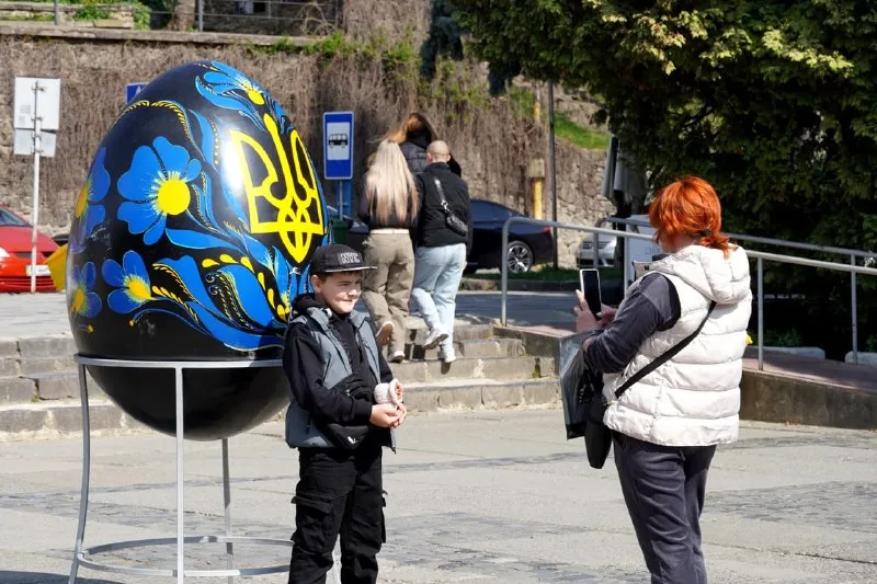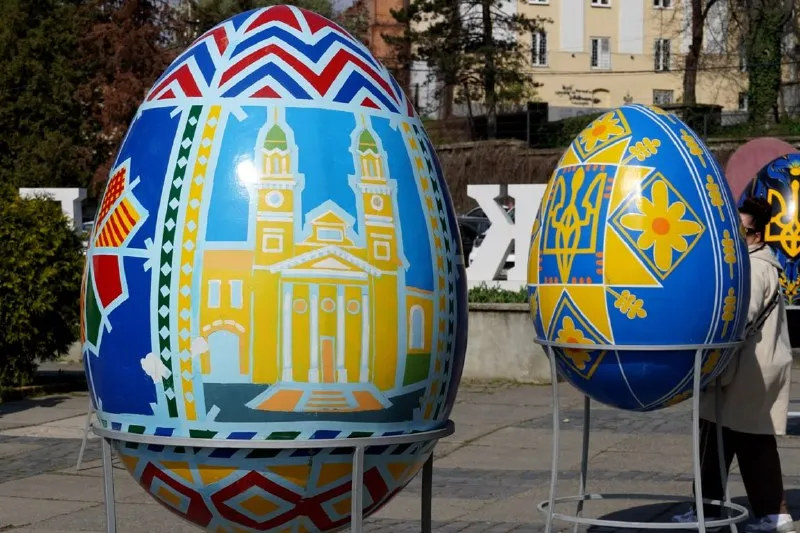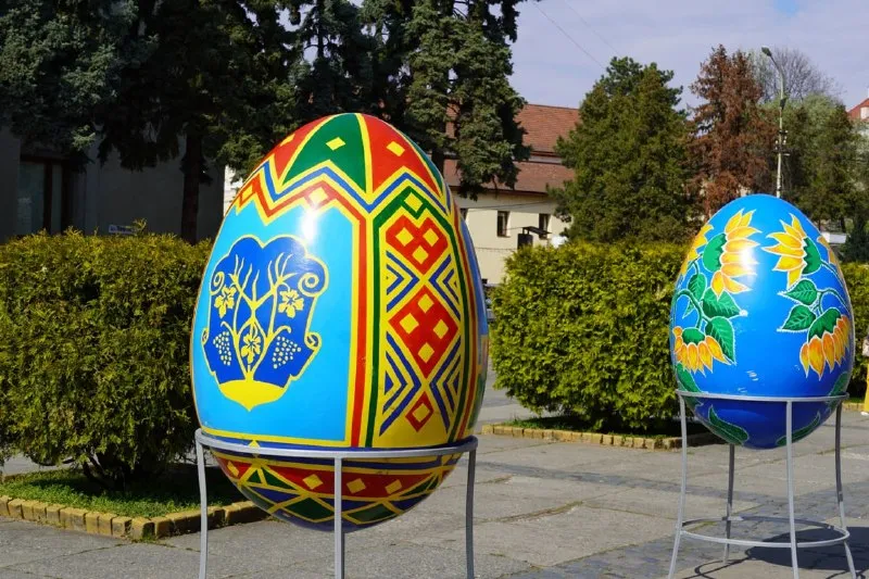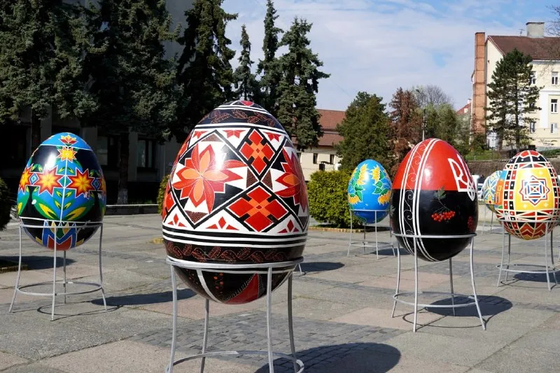 У центрі Ужгорода на площі Поштовій започаткована виставка великодніх писанок. Ця виставка вже на сьогодні представляє 16 унікальних експонатів, серед яких чотири артоб’єкти створили викладачі Ужгородської школи мистецтв, згідно повідомлення управління у справах культури, молоді та спорту міської ради.