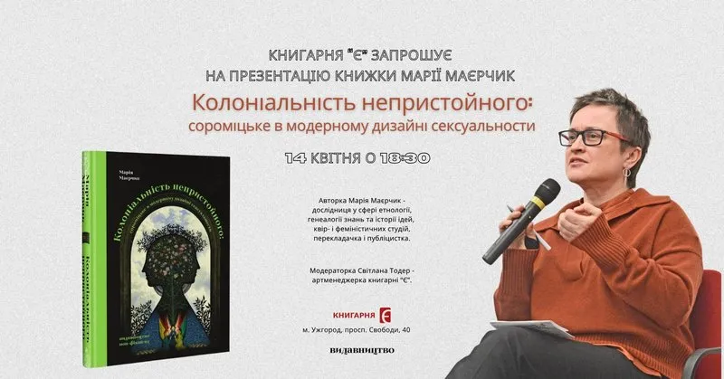 У книгарні «Є» відбудеться знайомство з дослідницькою роботою «Колоніальність непристойного: сороміцьке в модерному дизайні сексуальності». Авторка, відома публіцистка та феміністична дослідниця, простежить, як змінювались норми моралі в українській культурі протягом століть.