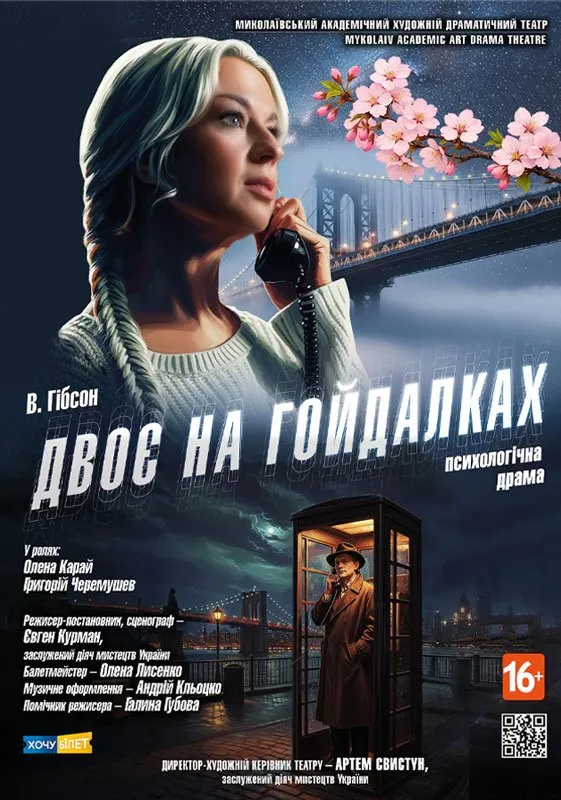 Миколаївський академічний художній драматичний театр представить на Малій сцені Закарпатського драмтеатру виставу «Двоє на гойдалках». Це історія про двох самотніх людей, чиї долі перетинаються.