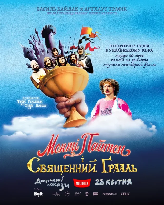 У кінотеатрі «Мультиплекс» відбудеться спеціальний показ легендарної комедії «Монті Пайтон і Священний Грааль», що входить до багатьох топ-списків кінематографічної класики. Показ відбудеться о 20:40 та 22:40, квитки доступні для придбання.