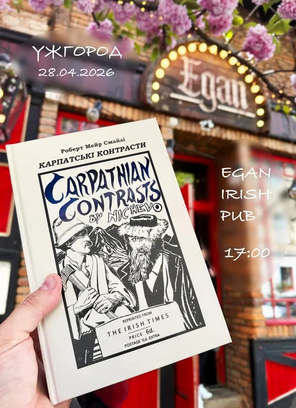 Читачів запрошують на презентацію книжки «Карпатські контрасти», яка занурює у захопливу репортажну подорож ірландського журналіста, головного редактора газети The Irish Times, що у 1937 році мандрував Чехословаччиною та Підкарпатською Руссю. Під час презентації слухачі дізнаються про ідею створення книжки, пошуки текстів, перекладацькі нюанси та роботу над виданням. Презентація відбудеться о 17:00 в «Egan Irish Pub», вулиця Волошина, 38.
