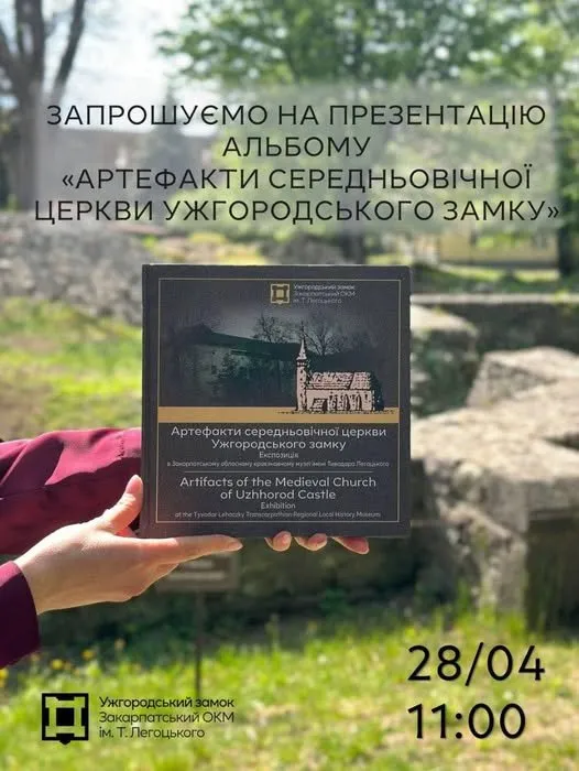 В Ужгородському замку відбудеться презентація альбому-збірки артефактів середньовічної зруйнованої церкви, що розміщувалась на території замку. Ця подія є частиною святкування 380-річчя з дня прийняття Ужгородської унії — важливої християнської події, що назавжди змінила релігійний ландшафт Закарпаття. Початок презентації о 11:00.