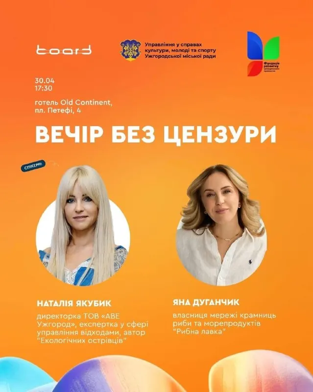 У четвер, 30 квітня, в Ужгороді відбудеться унікальна подія – «Вечір без цензури», де зібрались імена, які надихають та мотивують своєю історією.