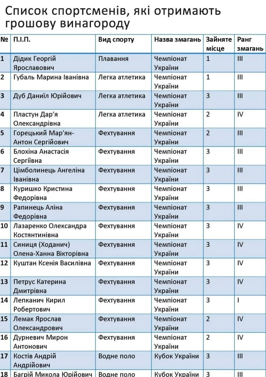 15 кращих ужгородських спортсменів у 2023 році отримуватимуть щомісяця по 3 тис грн стипендії із міського бюджету