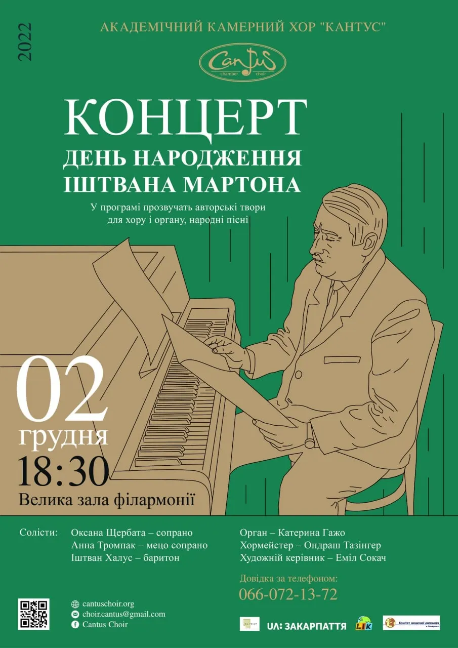 Камерний хор "Кантус" дасть концерт в Ужгороді до Дня народження Іштвана Мартона