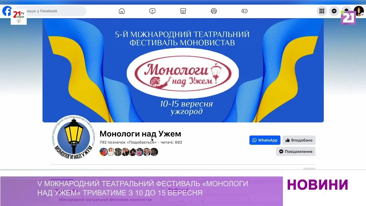 V Міжнародний театральний фестиваль «Монологи над Ужем» триватиме з 10 до 15 вересня