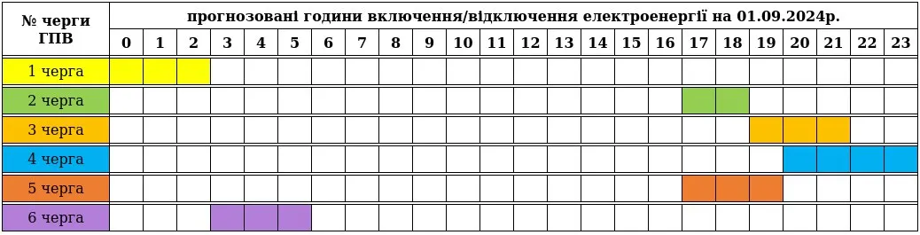 Погодинні відключення електроенергії на Закарпатті 1 вересня