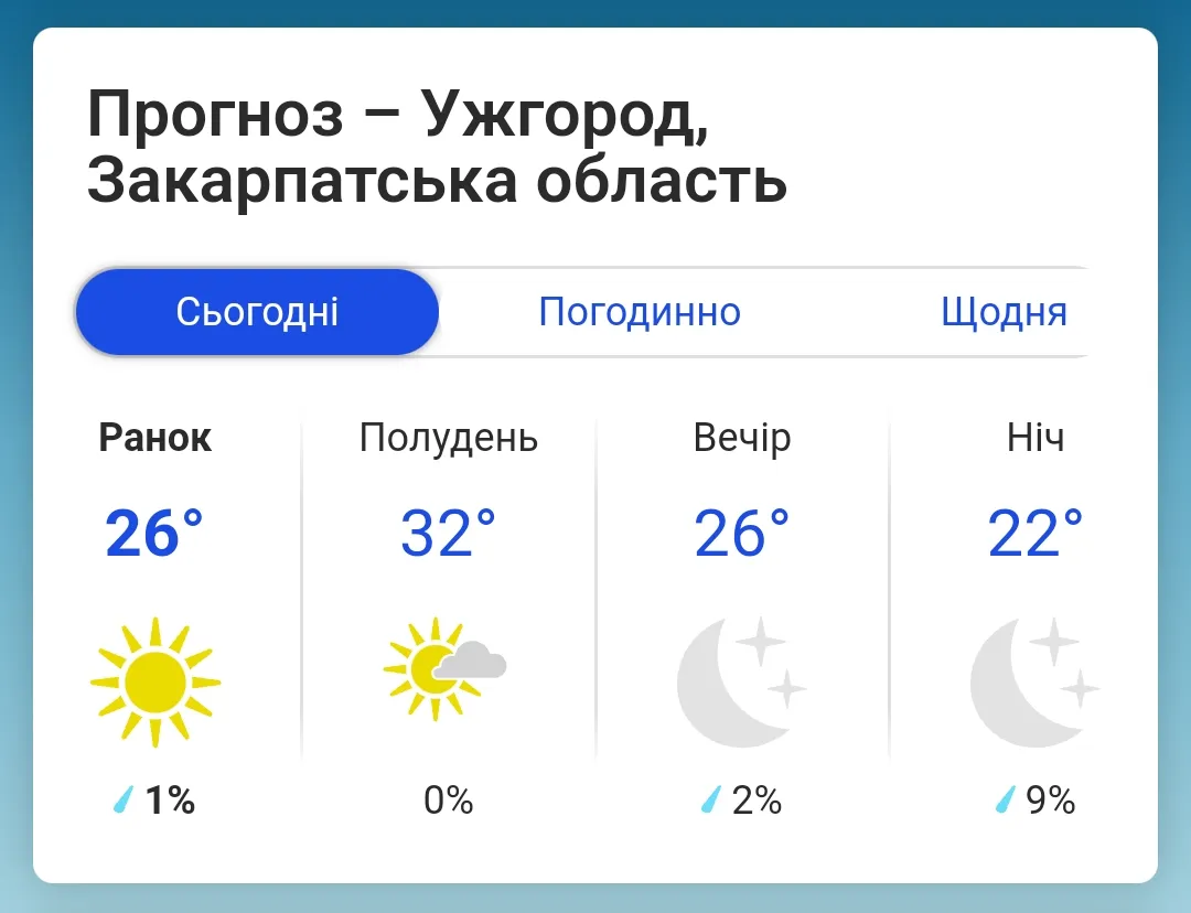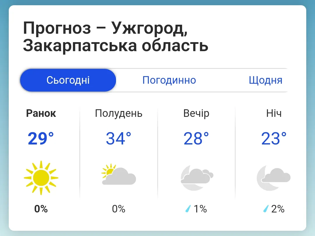 9 липня на Закарпатті та в Ужгороді очікується тепла погода з температурою повітря близько 33°C