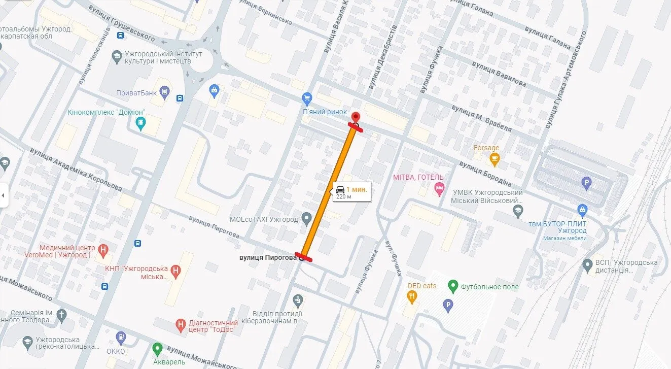 Ужгородців інформують про перекриття проїзду на ділянці вулиці Вербицького
